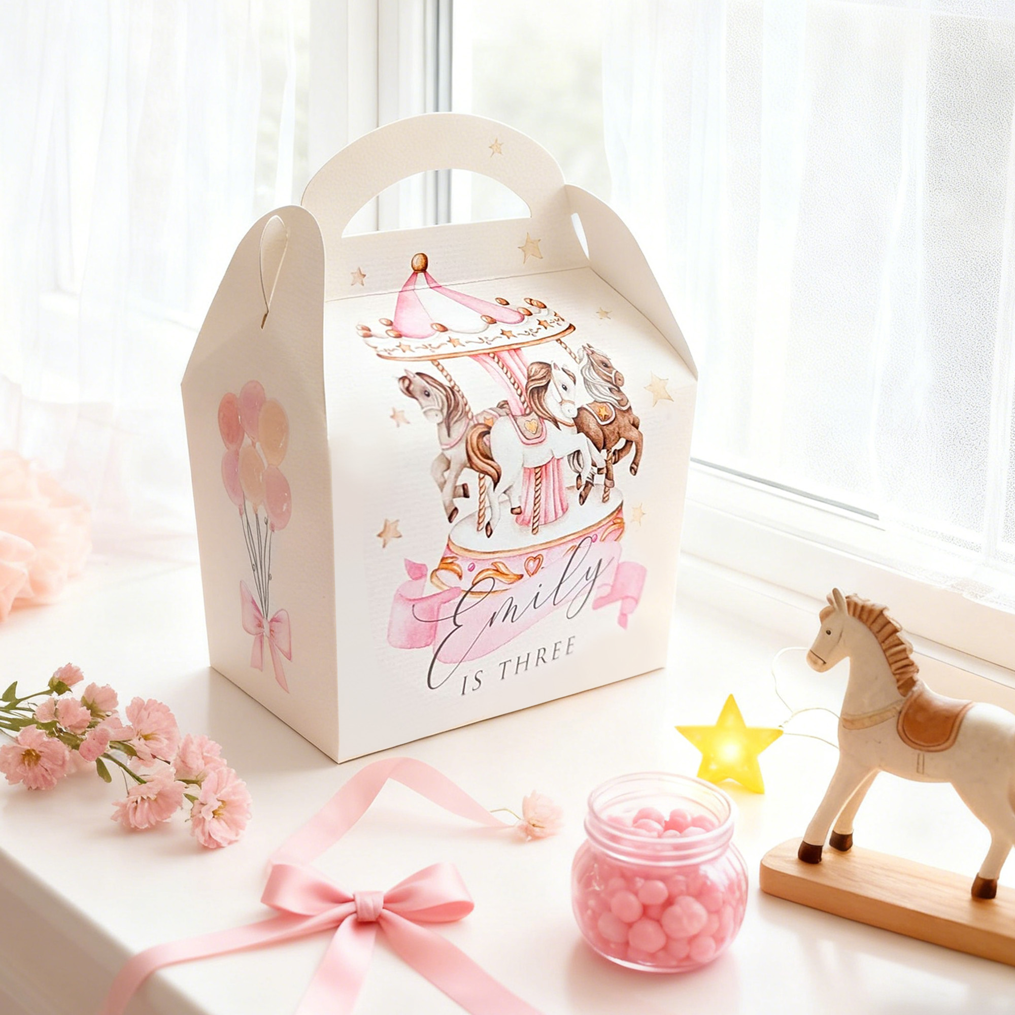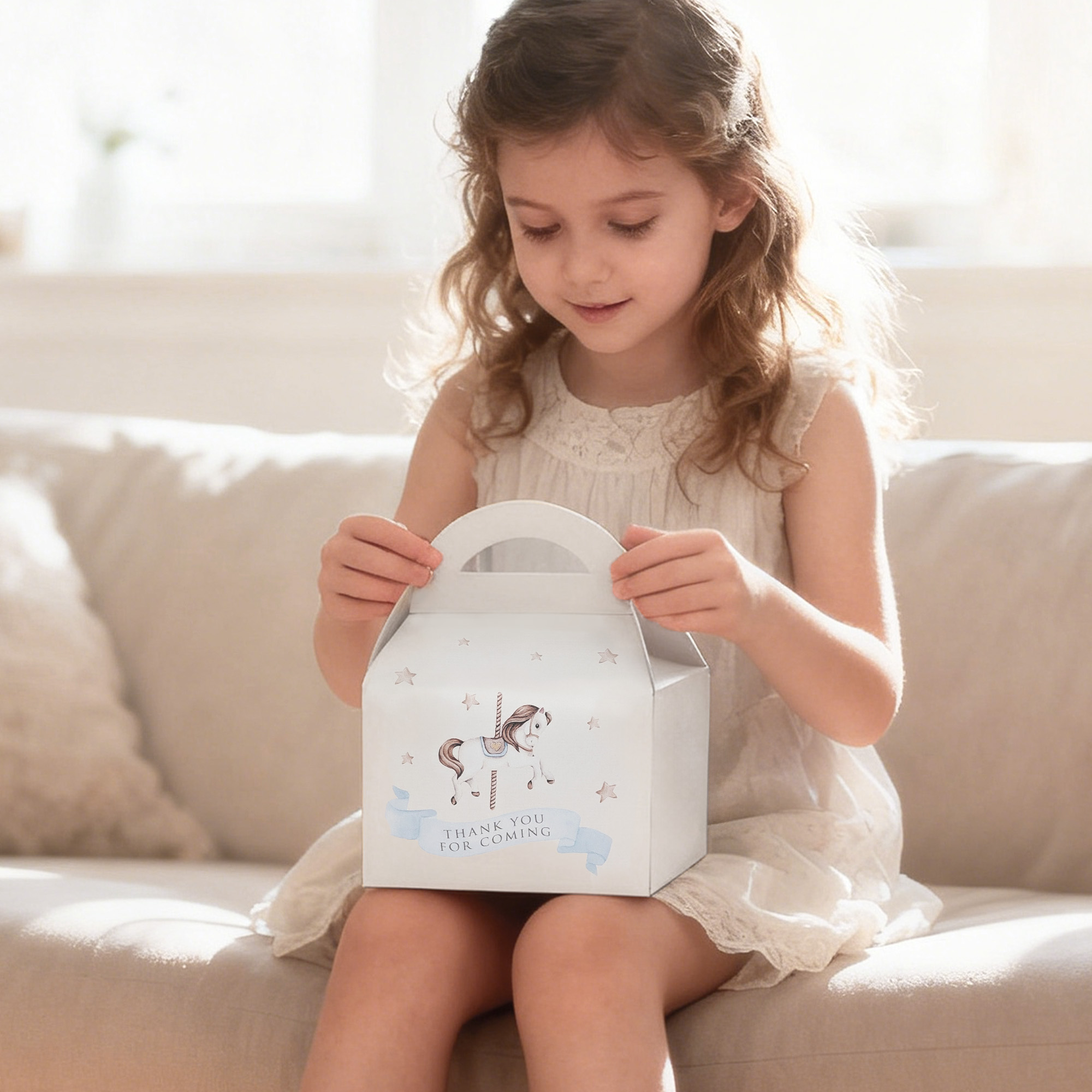 Charming Design - This adorable gift box features a delightful carousel fairground theme, complete with whimsical ponies and pastel colors, making it perfect for children's parties and special events.