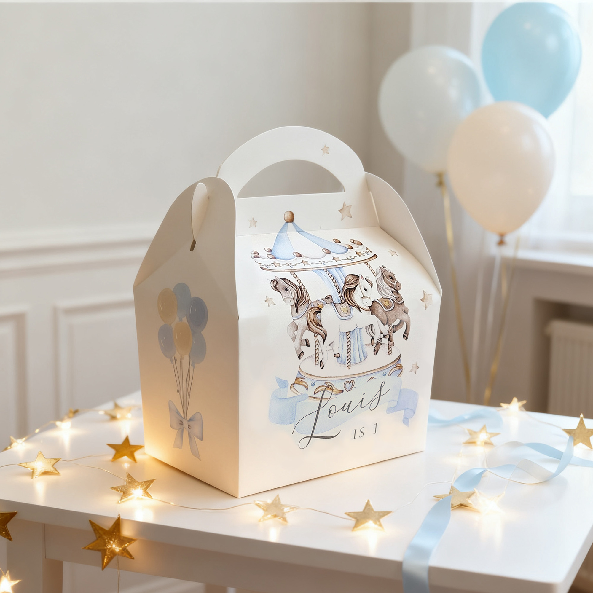 | Style | Carousel Fairground Pattern Personalised Children’s Party Box |