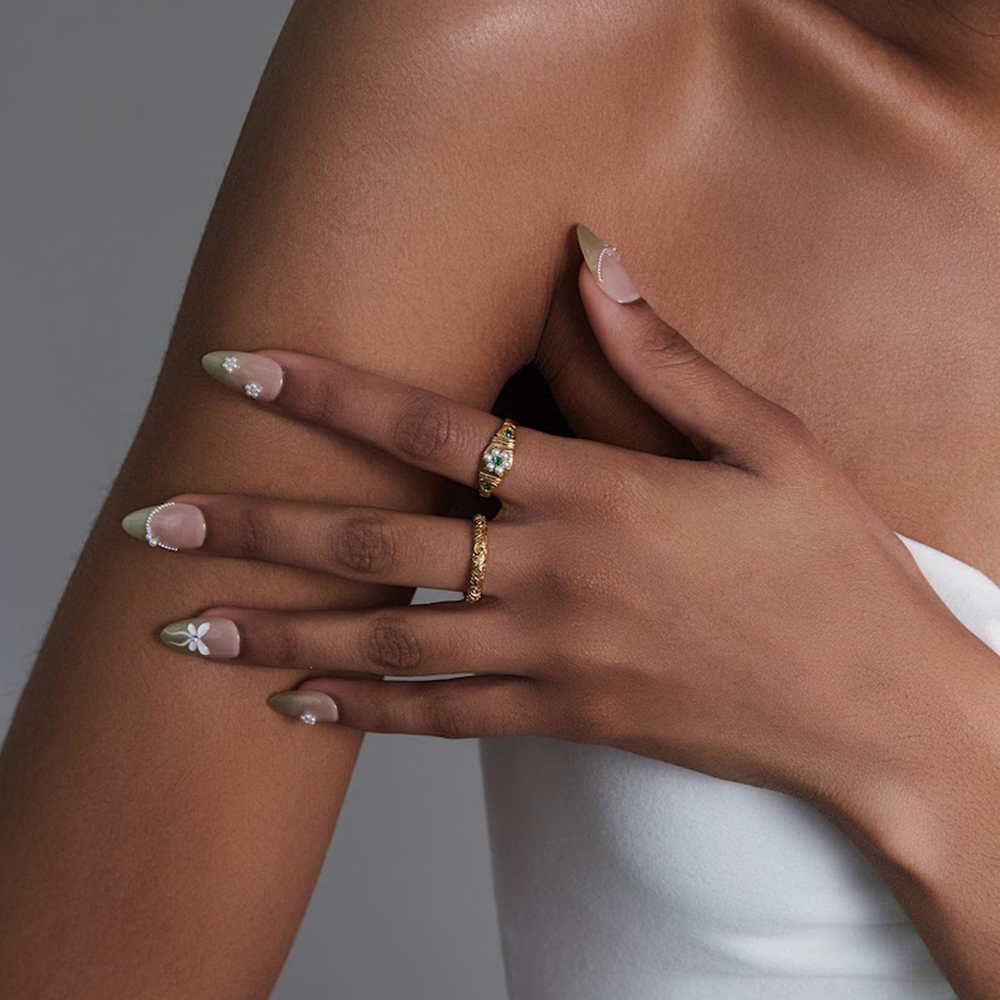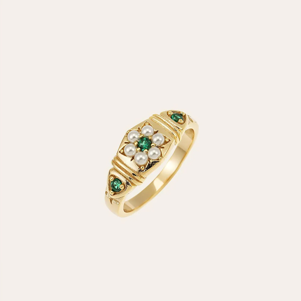 | Style | Custom Birthstone Emerald Pearl Ring |