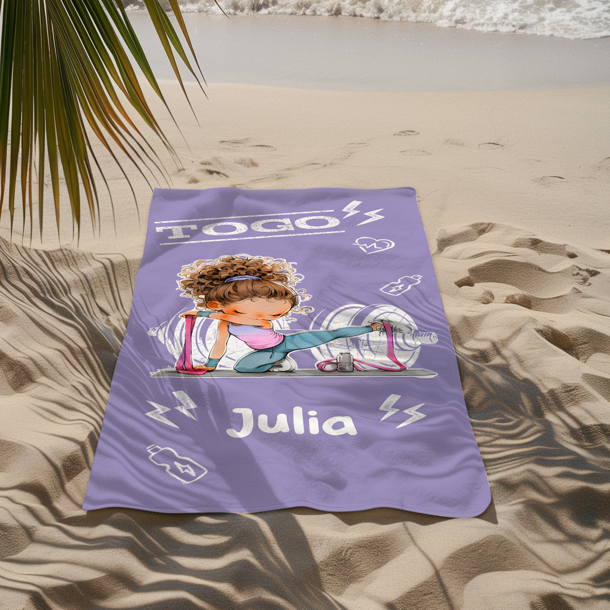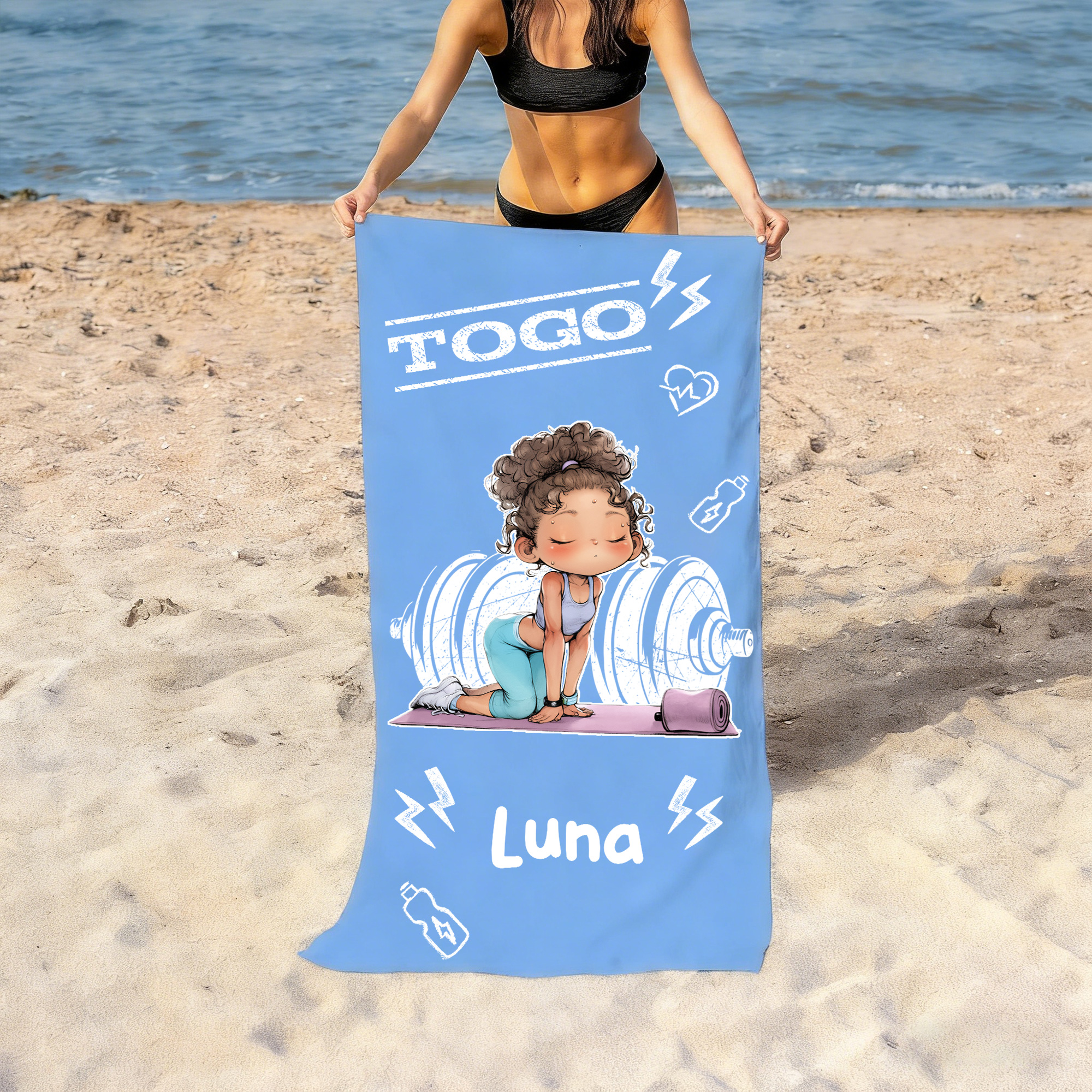 | Style | Custom Cartoon Fitness Girl Beach Towel with Name |