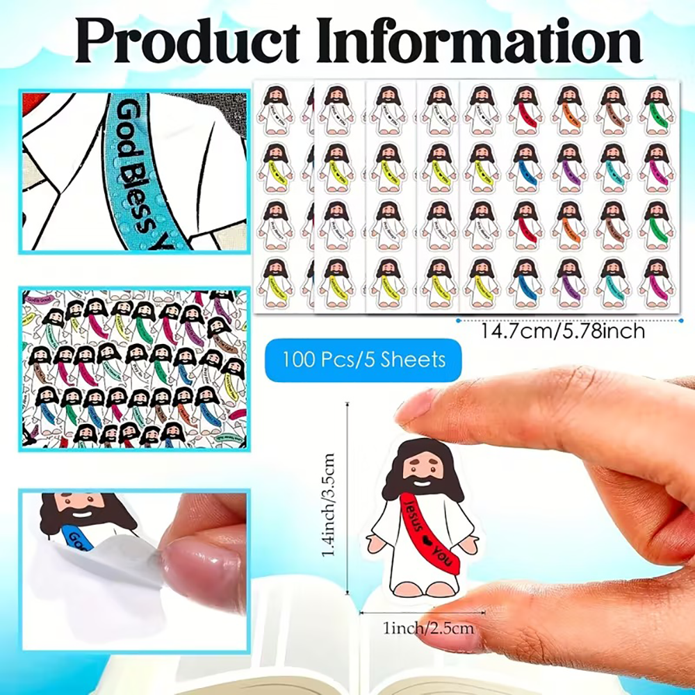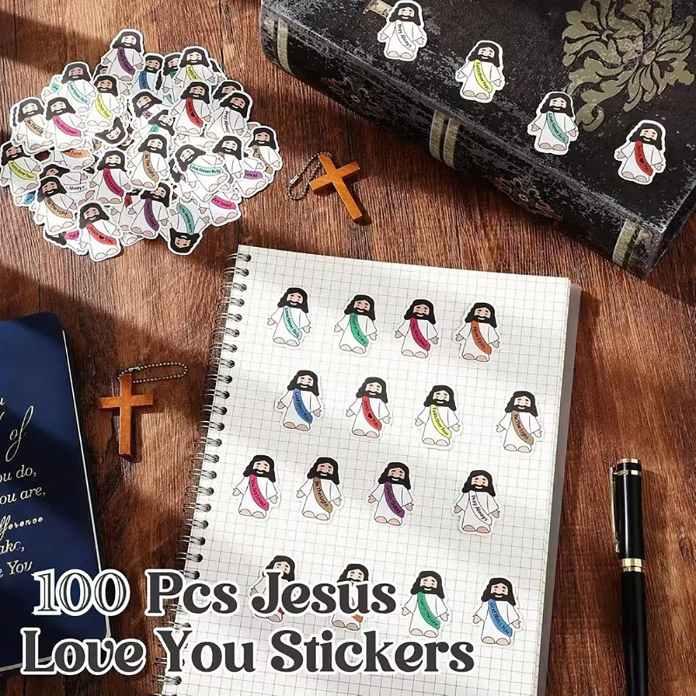 Custom Cartoon Little Jesus Stickers with Blessing(Set of 100pcs), Jesus Loves You Decals, Faith-based Labels for Gift Package, Gift for Mom/Her/Kids