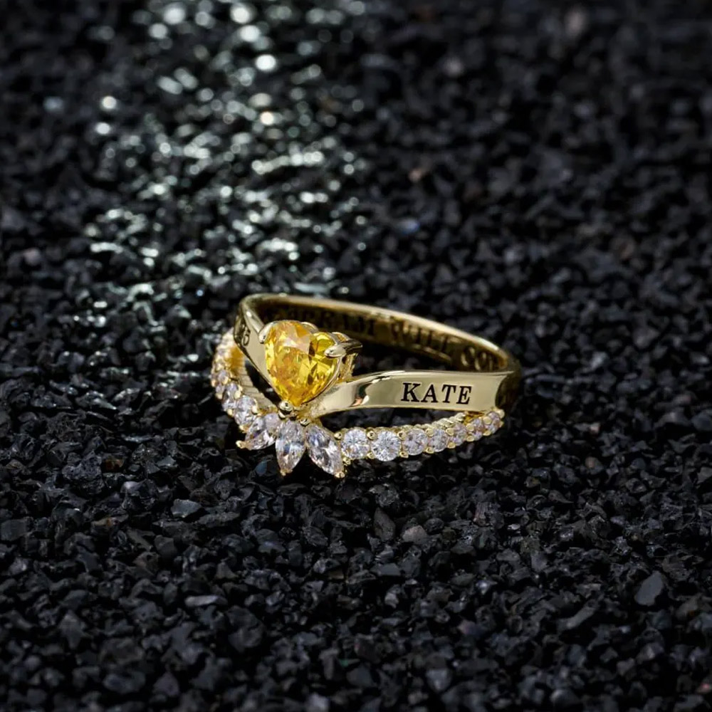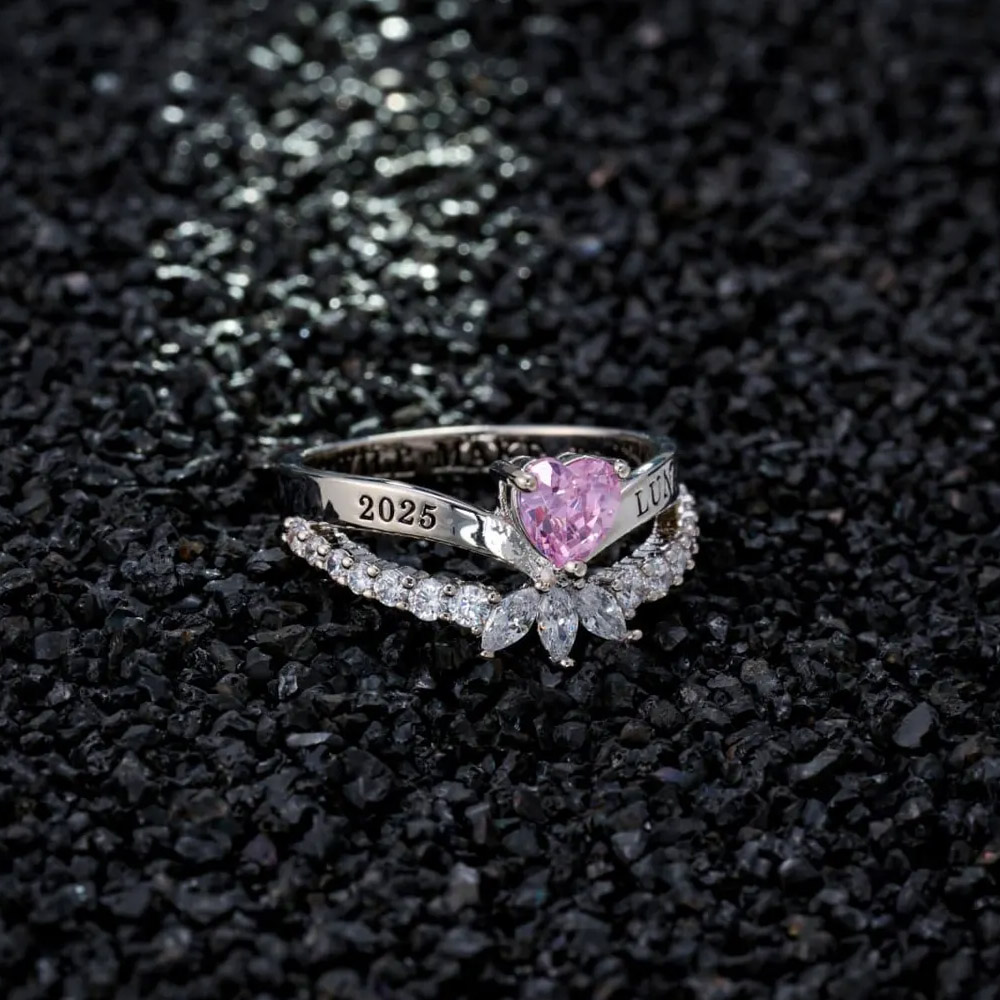 | Style | Custom Engraved Bouquet Graduation Ring with Heart Birthstone |