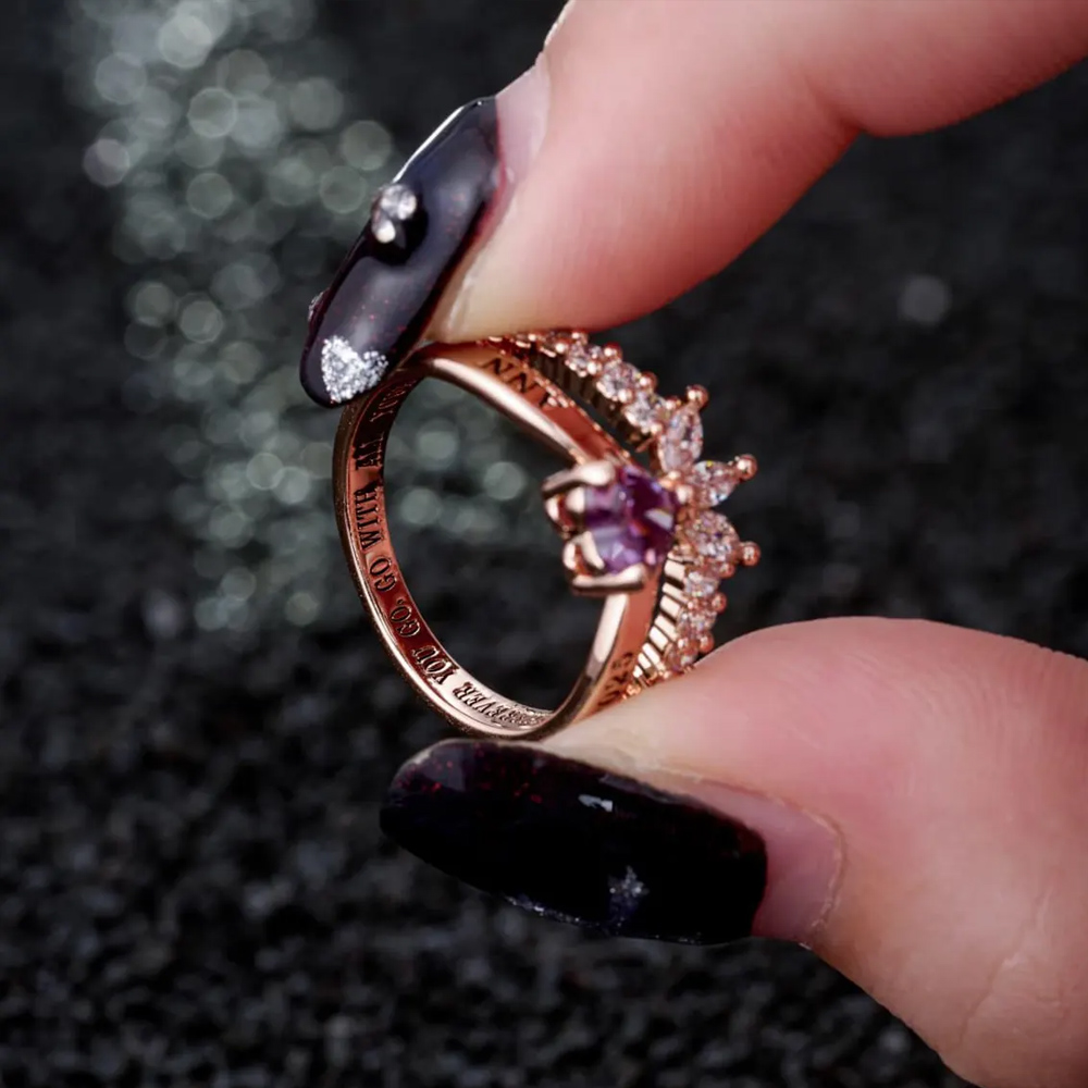 Premium Construction — Made from hypoallergenic, tarnish-resistant brass with a polished finish, this ring offers durability without weight. The smooth interior ensures comfort for daily wear, while the detailed engraving and stone setting remain secure through years of celebration.