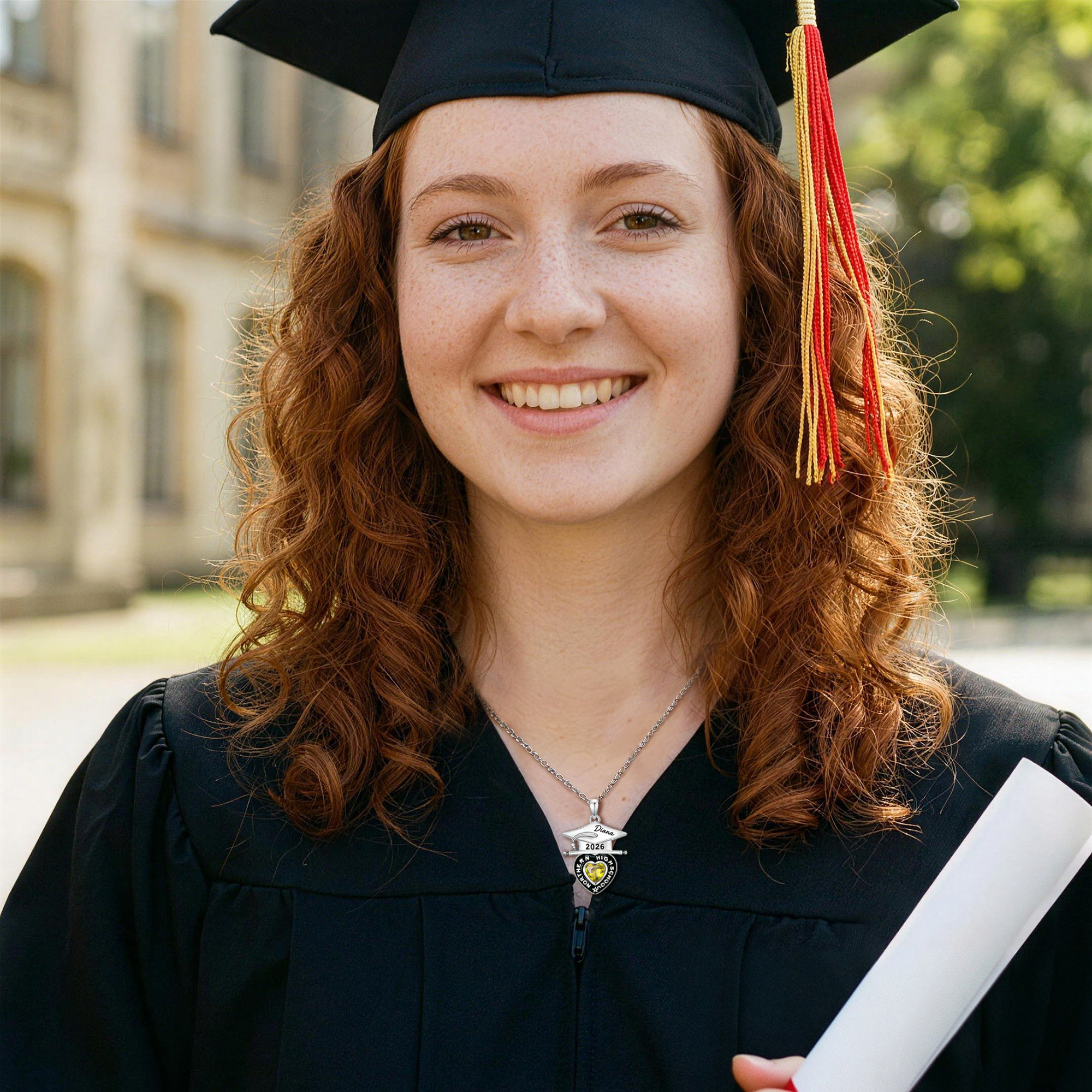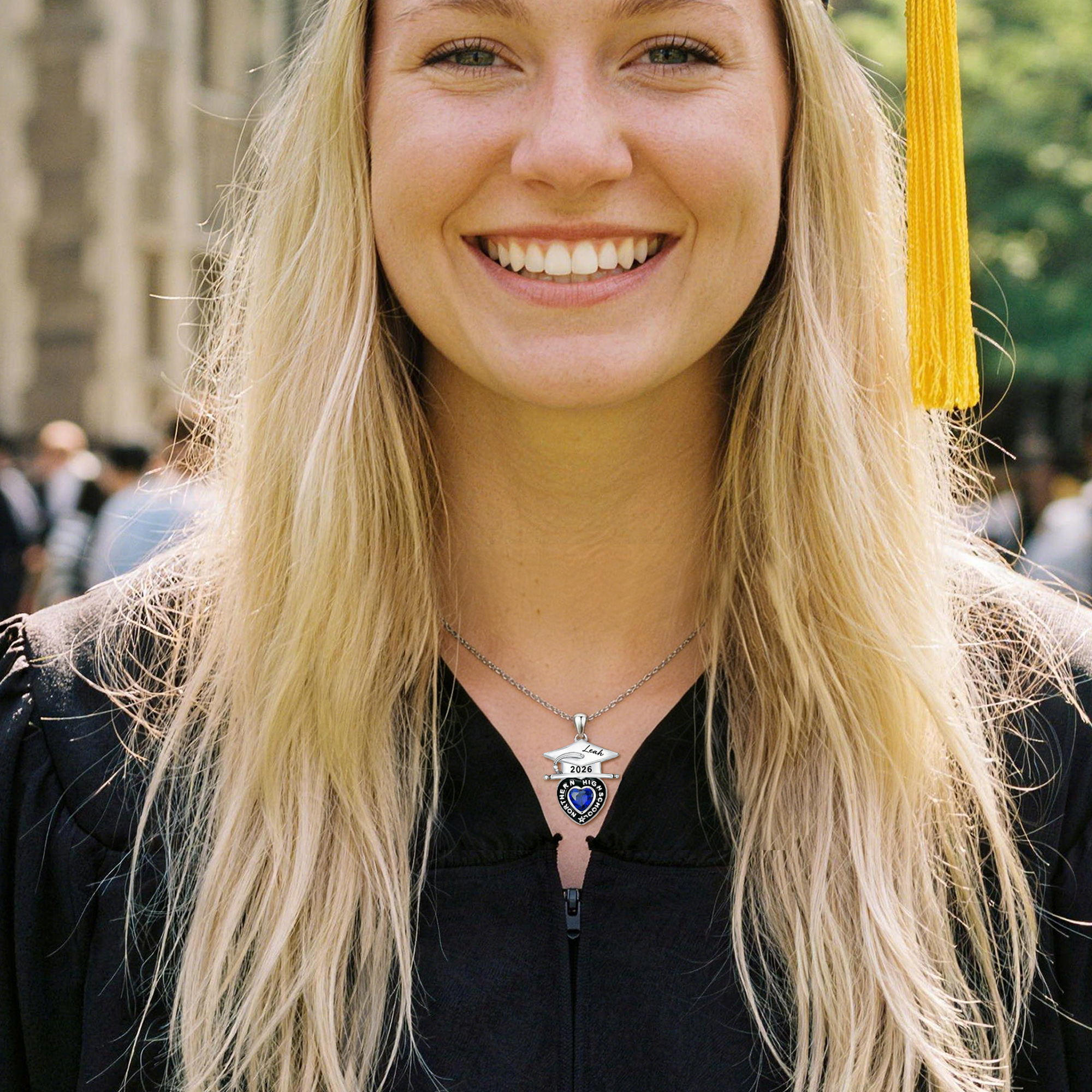 Fully Customized – Add the graduate’s name in elegant script on the cap brim, plus school name and year on the heart. Every detail is precision-engraved for lasting clarity, turning a standard pendant into a meaningful milestone keepsake.