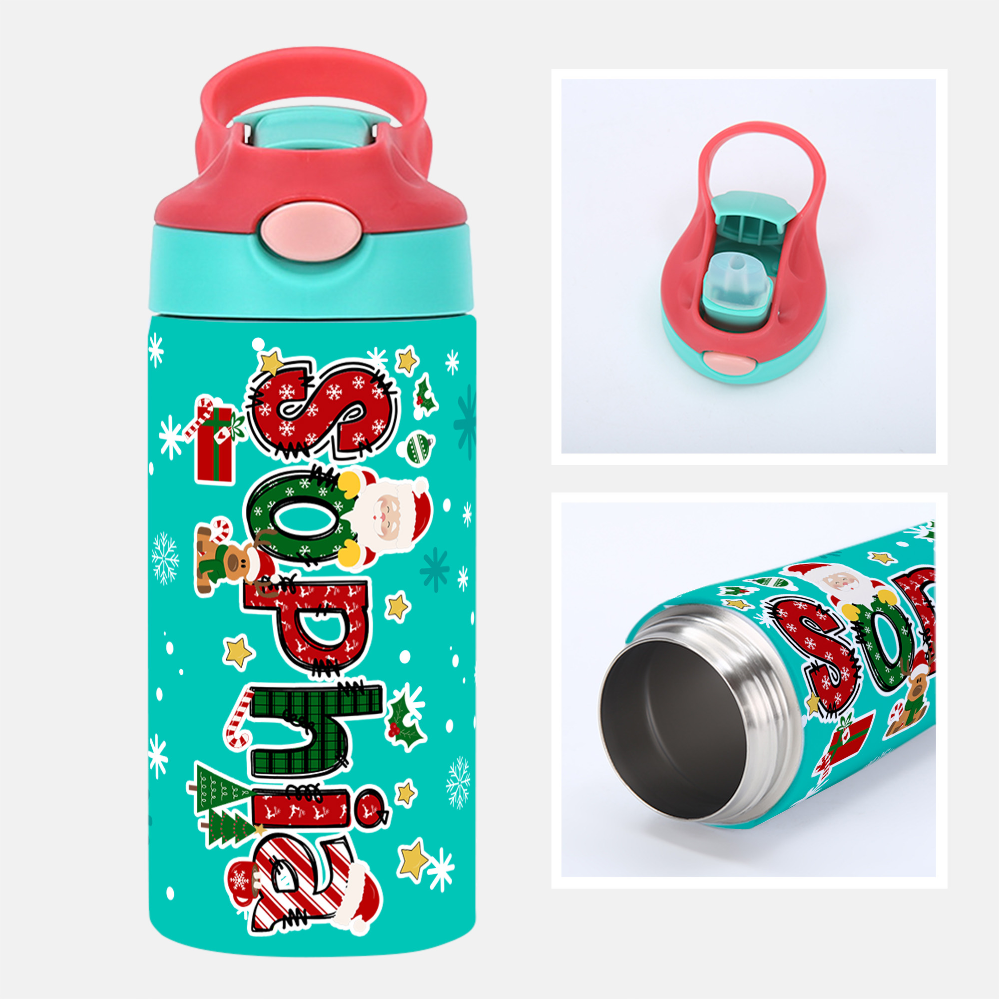 | Style | Custom Name Cartoon Christmas Theme Water Bottle |