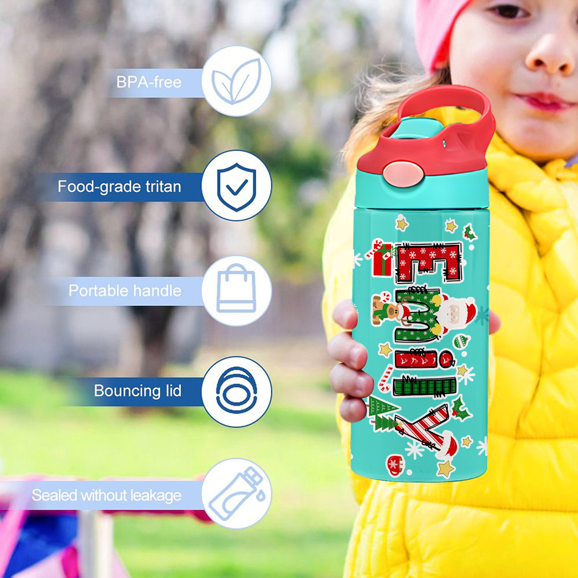 Christmas Gift for Kids - A wonderful holiday gift for boys and girls, this personalized Christmas water bottle is both practical and festive. It’s perfect for Christmas morning surprises, stocking stuffers, or thoughtful gifts for students and young children who enjoy colorful, seasonal items.