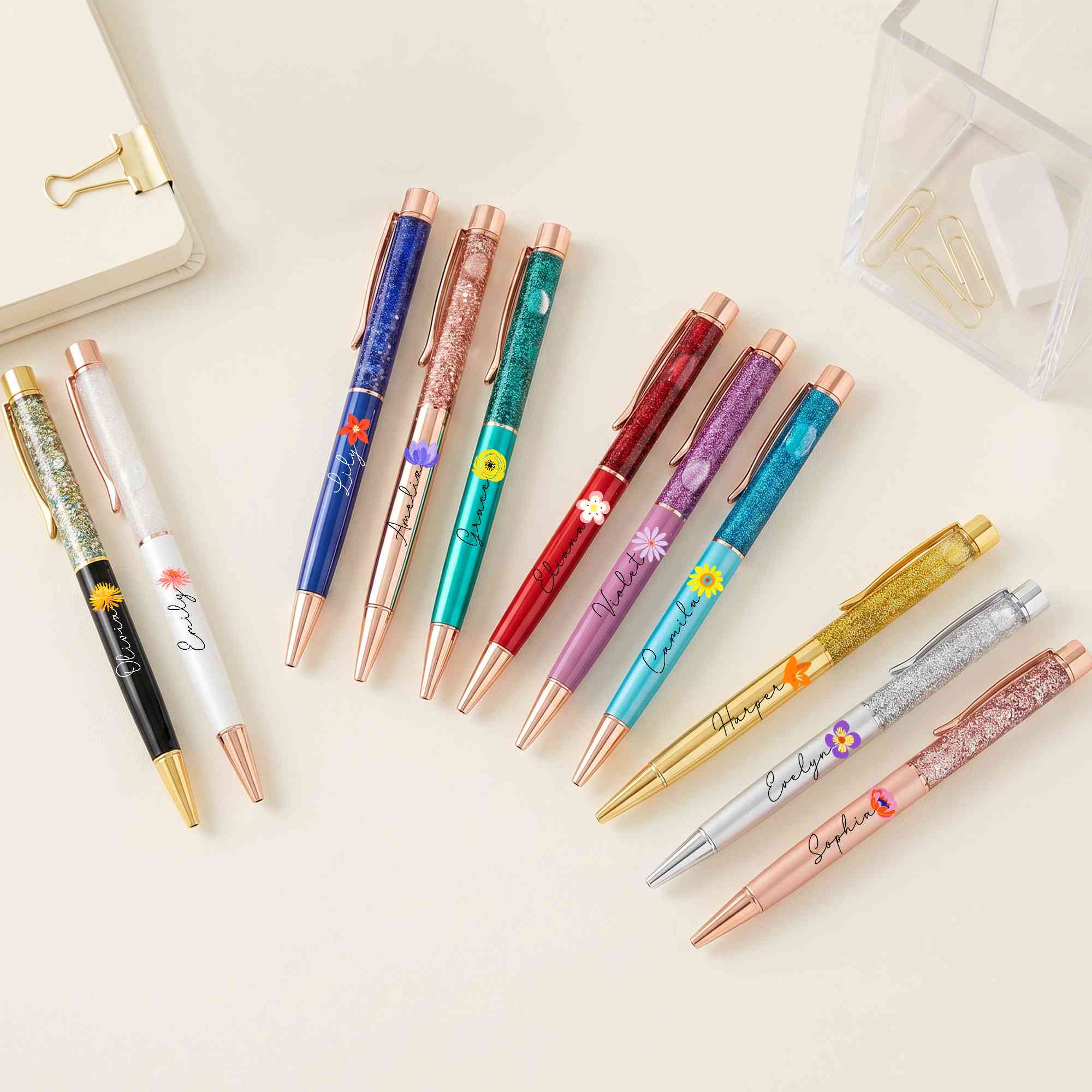 | Style | Custom Name Colorful Birth Flower Gel Pens |