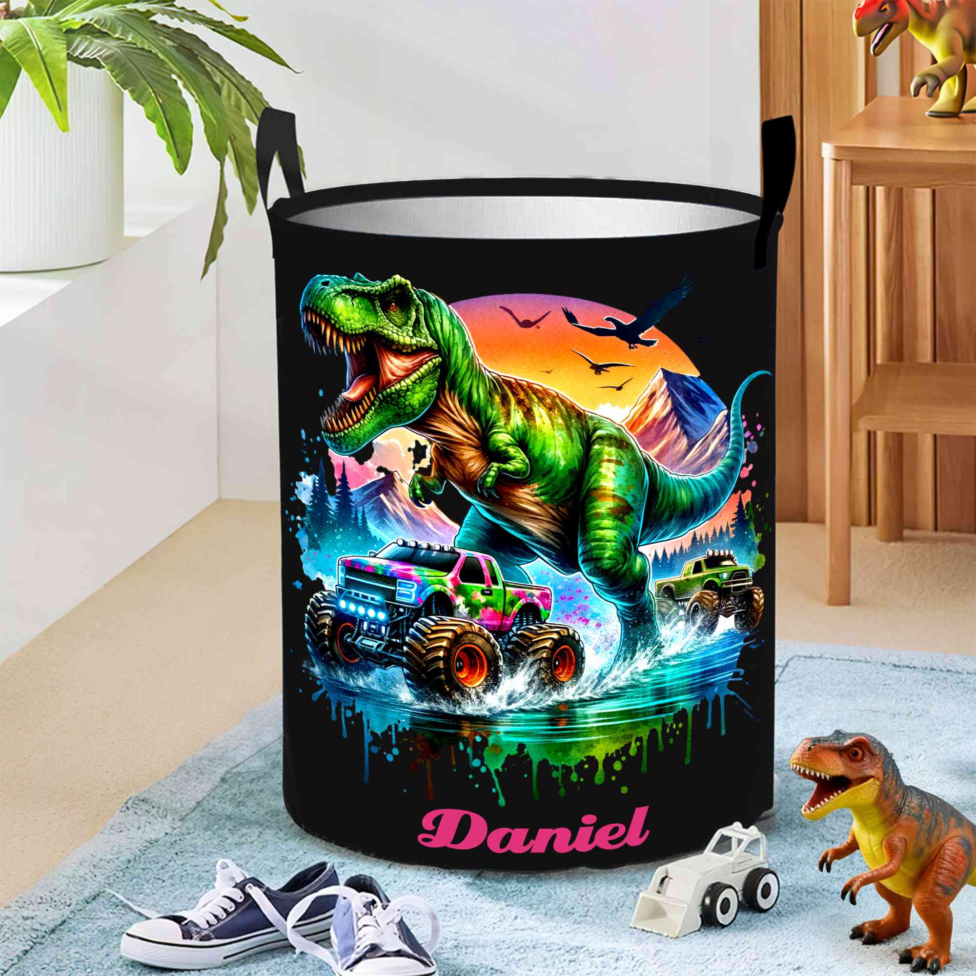 Style Custom Name Monster Truck & Dinosaur Collapsible Storage Basket with Handle