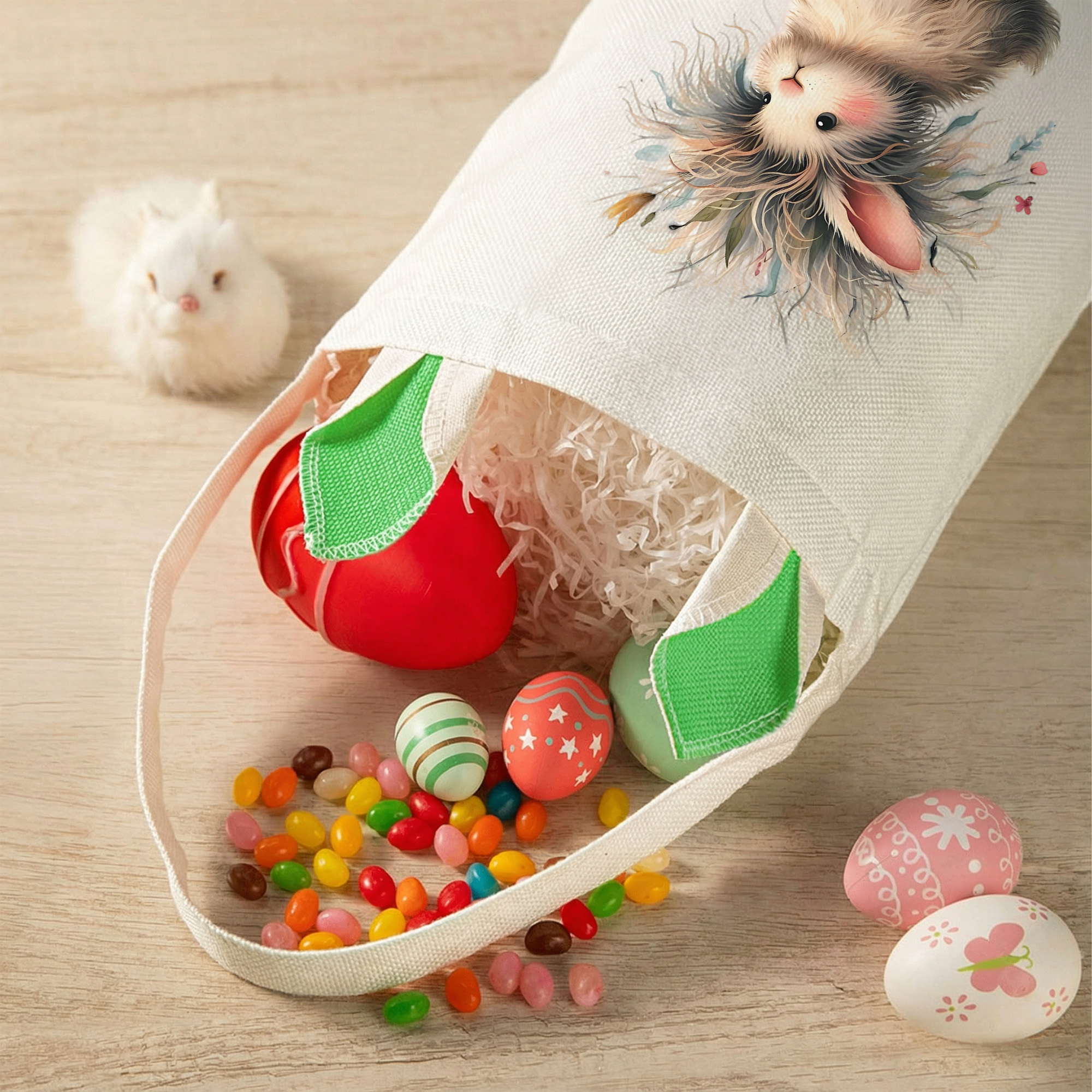Quirky Floral Bunny Design - This Easter basket features a cheerful rabbit shape with soft bunny ears and quirky floral bunny design, creating a playful and festive look that fits perfectly with Easter day traditions and Happy Easter egg hunt themes.