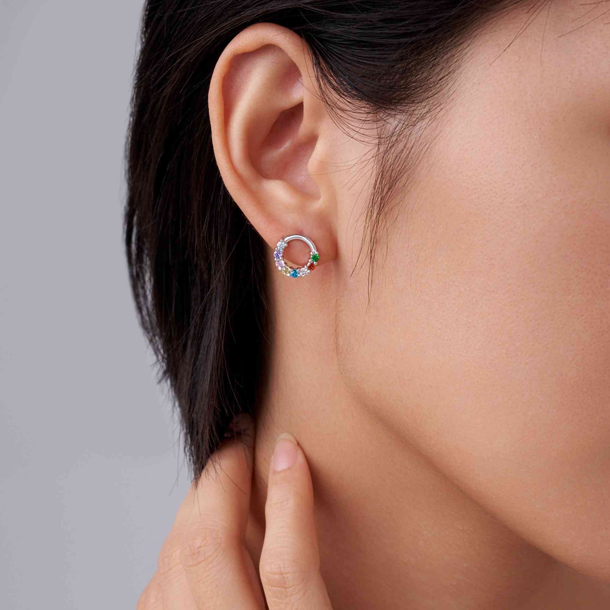 | Style | Personalized 1-10 Birthstones Family Reunion Circle Stud Earrings |