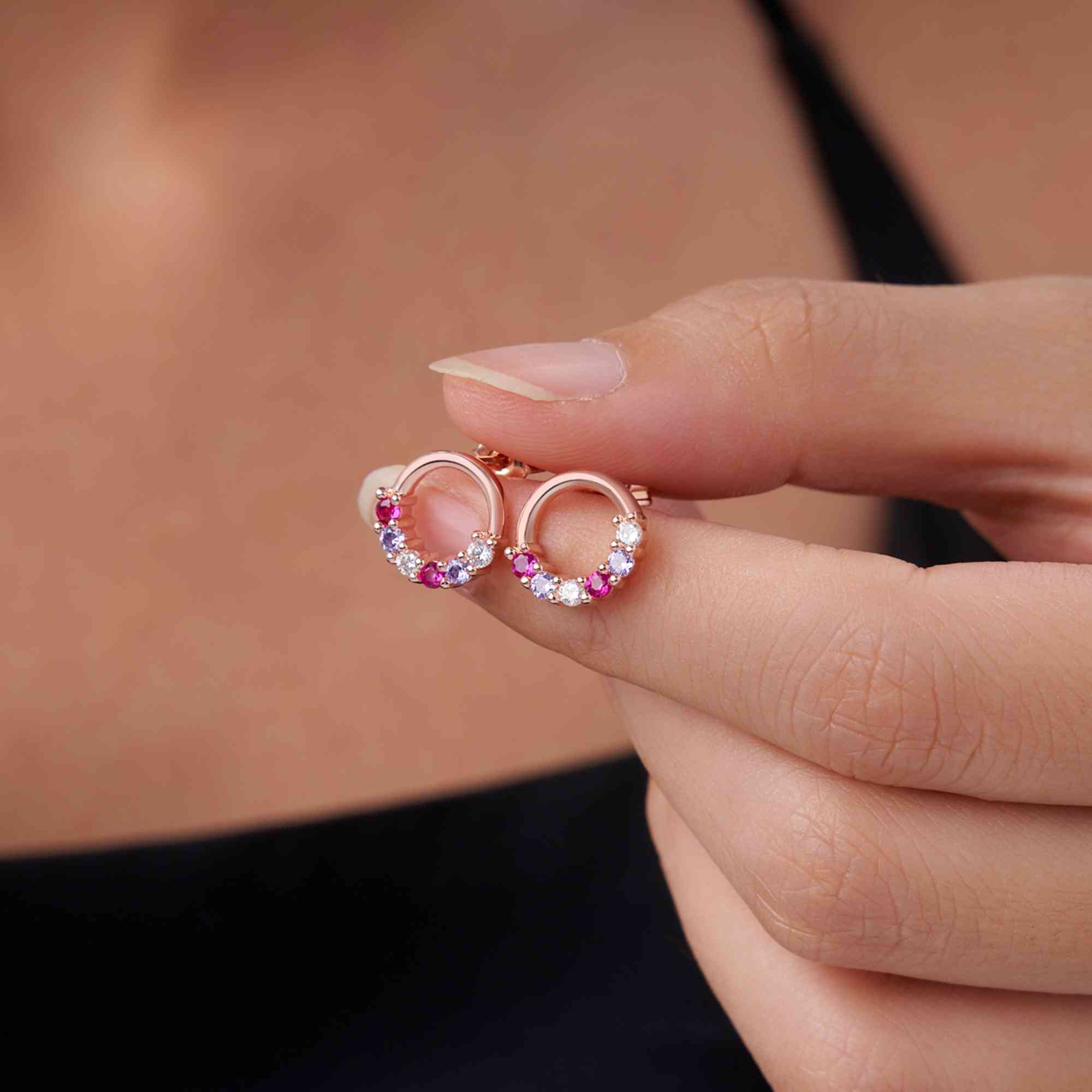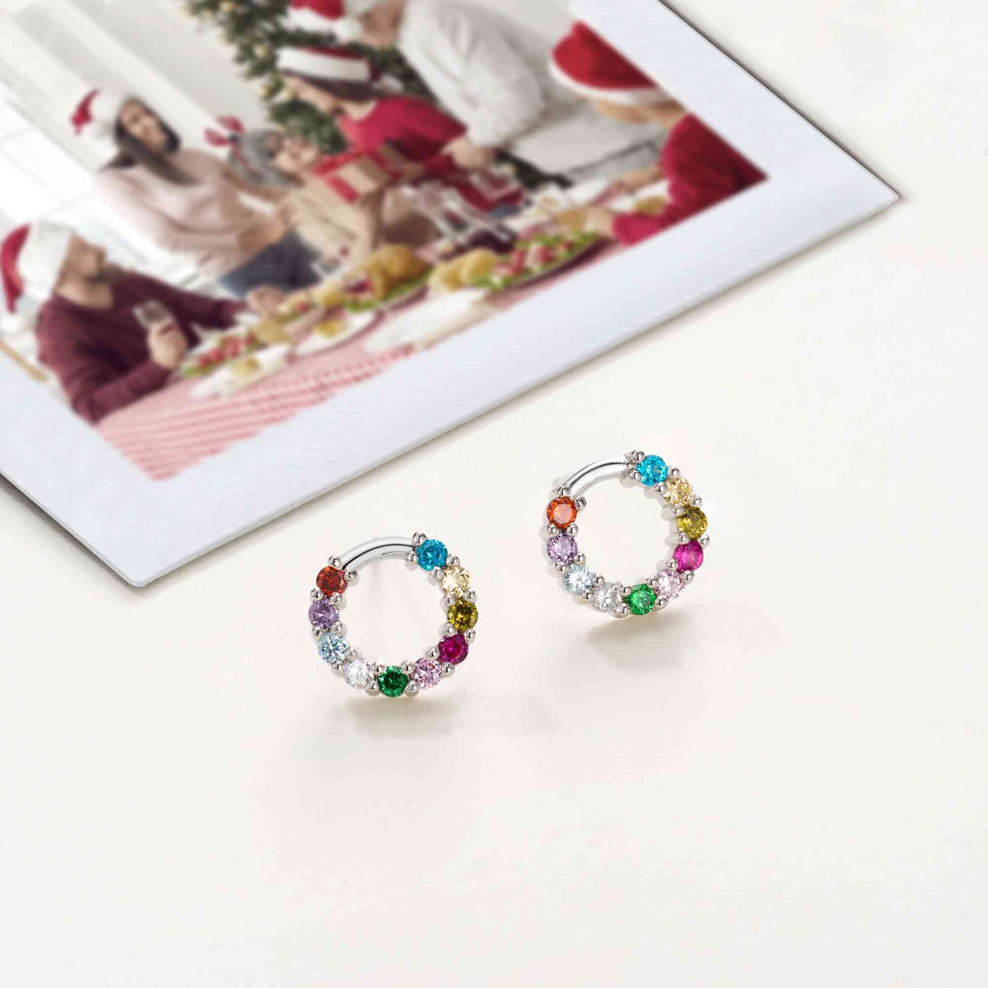 Family Circle Design - These Personalized Birthstone Family Circle Stud Earrings feature a graceful circular design that represents unity, love, and everlasting family bonds. The minimalist shape highlights a timeless elegance, suitable for both daily wear and special moments, adding a soft sparkle that celebrates the beauty of connection.