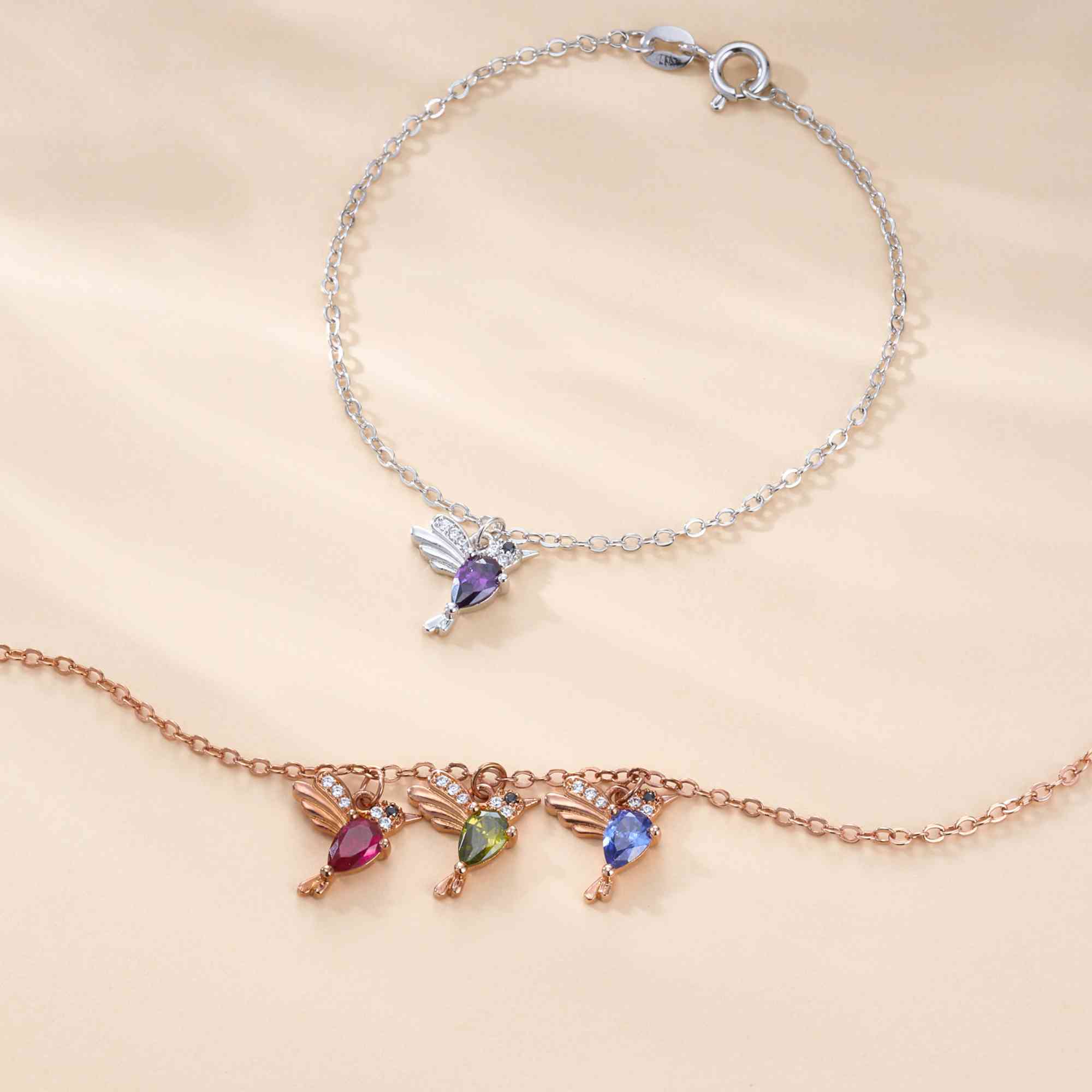Style | Personalized 1-6 Hummingbirds Bracelet with Birthstones |