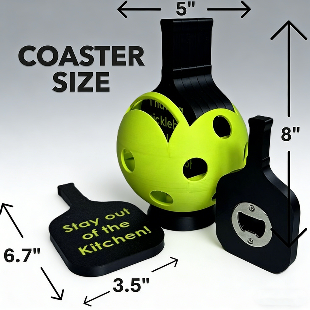 | Style | Personalized 3D Printed Pickleball Paddle Coaster Set with Holder |