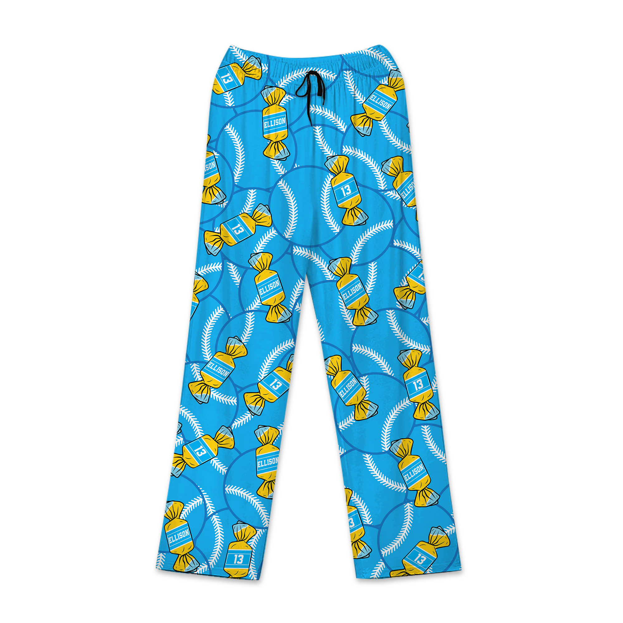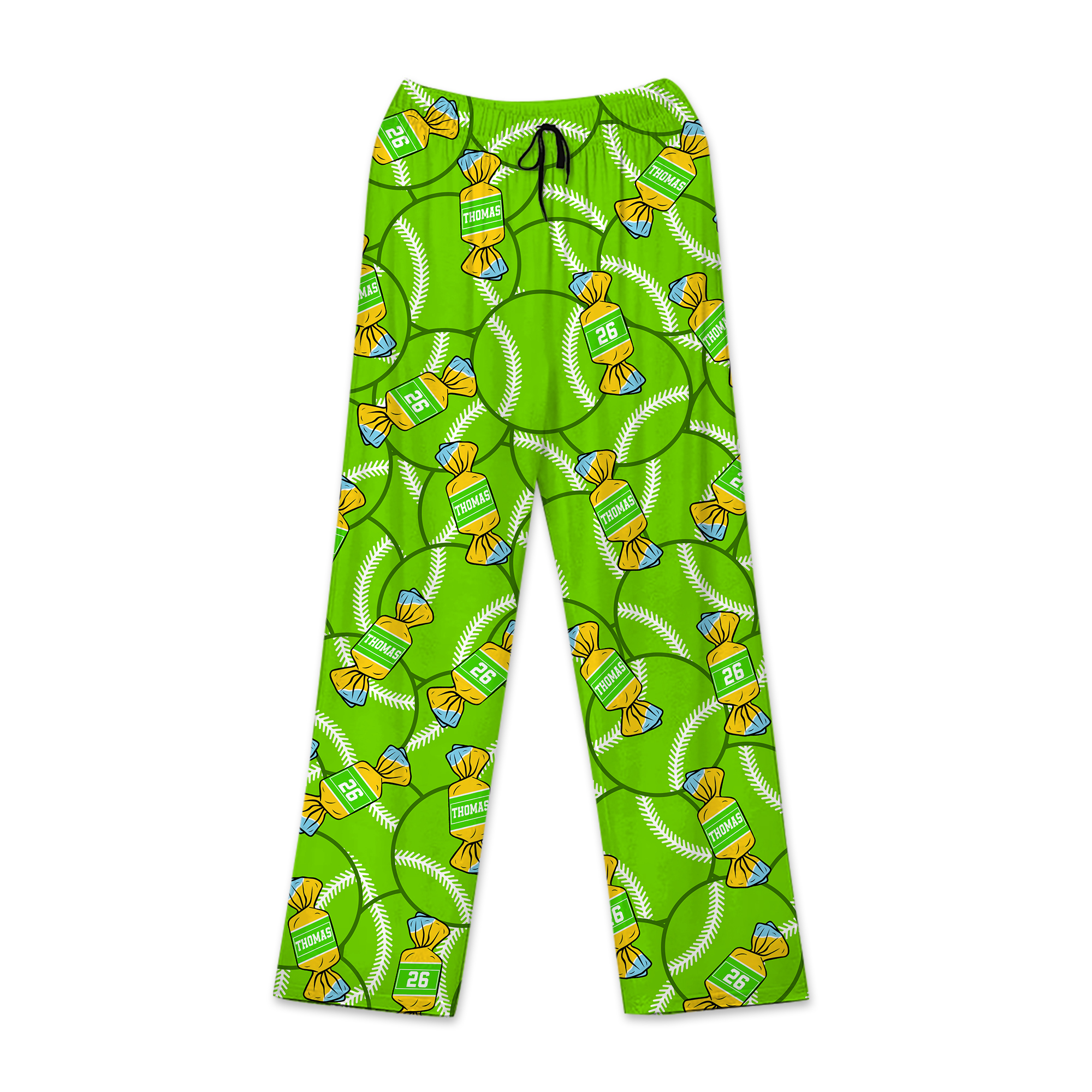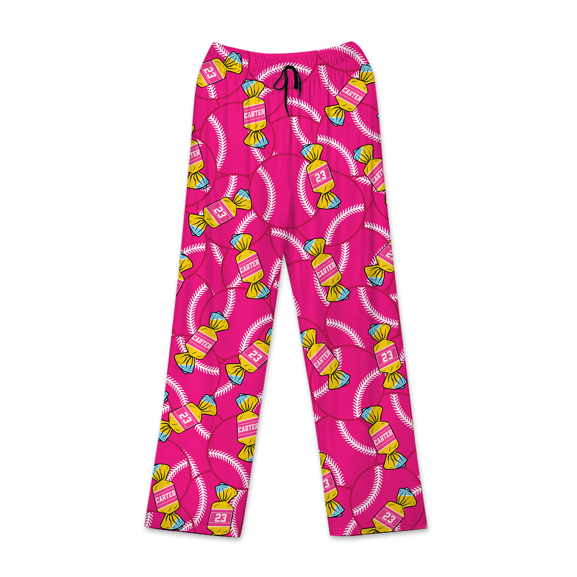 Personalized Candy Baseball Pajama Pants with Name & Number |