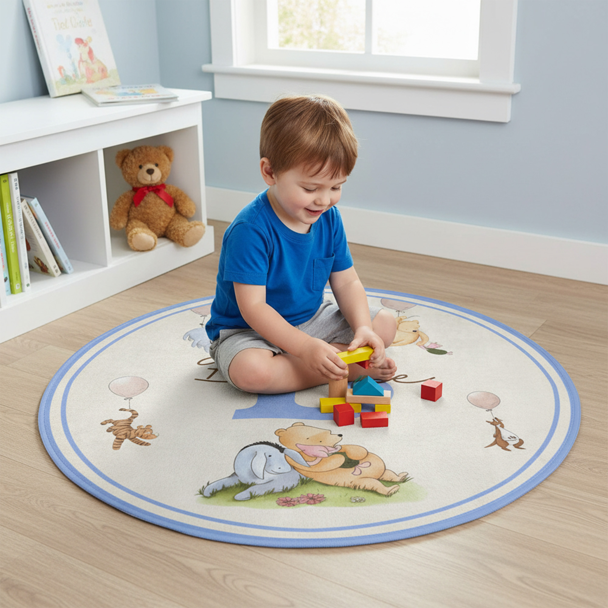 Classic Winnie the Pooh Design - This round fleece floor mat brings a warm and nostalgic touch to your space with its classic Winnie the Pooh artwork. The soft colors and gentle storybook style fit beautifully into any nursery, bedroom, or play corner.