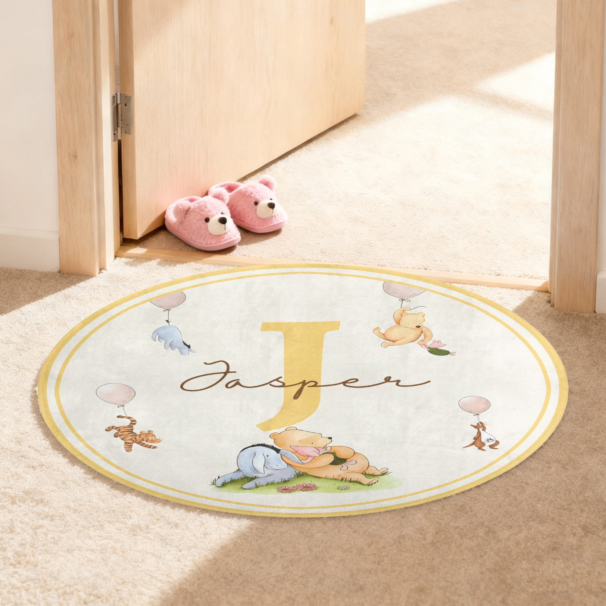 | Style | Personalized Classic Winnie the Pooh Round Fleece Floor Mat with Name & Initial |