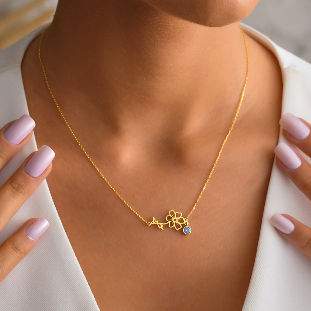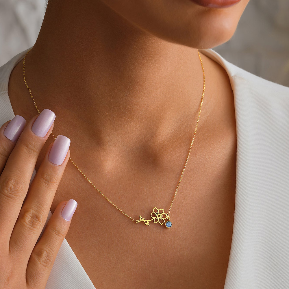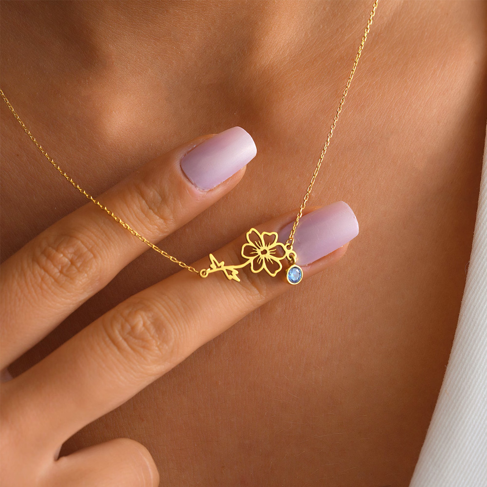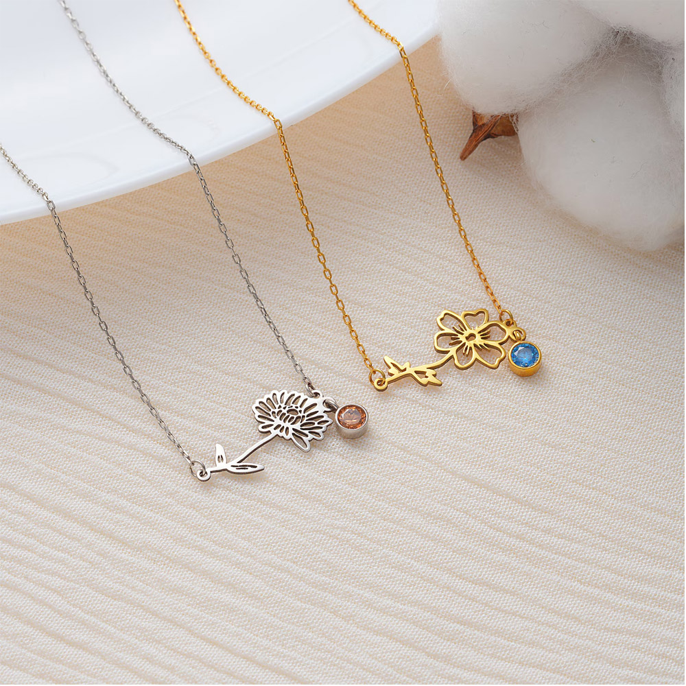 | Style | Personalized Dainty Birth Flower Necklace with Birthstone |