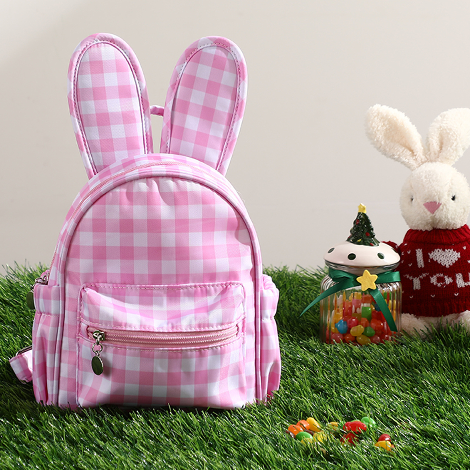 Charming Bunny Design - This delightful backpack features adorable bunny ears and a playful plaid pattern, making it a fun accessory for children. The whimsical design appeals to kids and adds a touch of joy to their daily adventures.