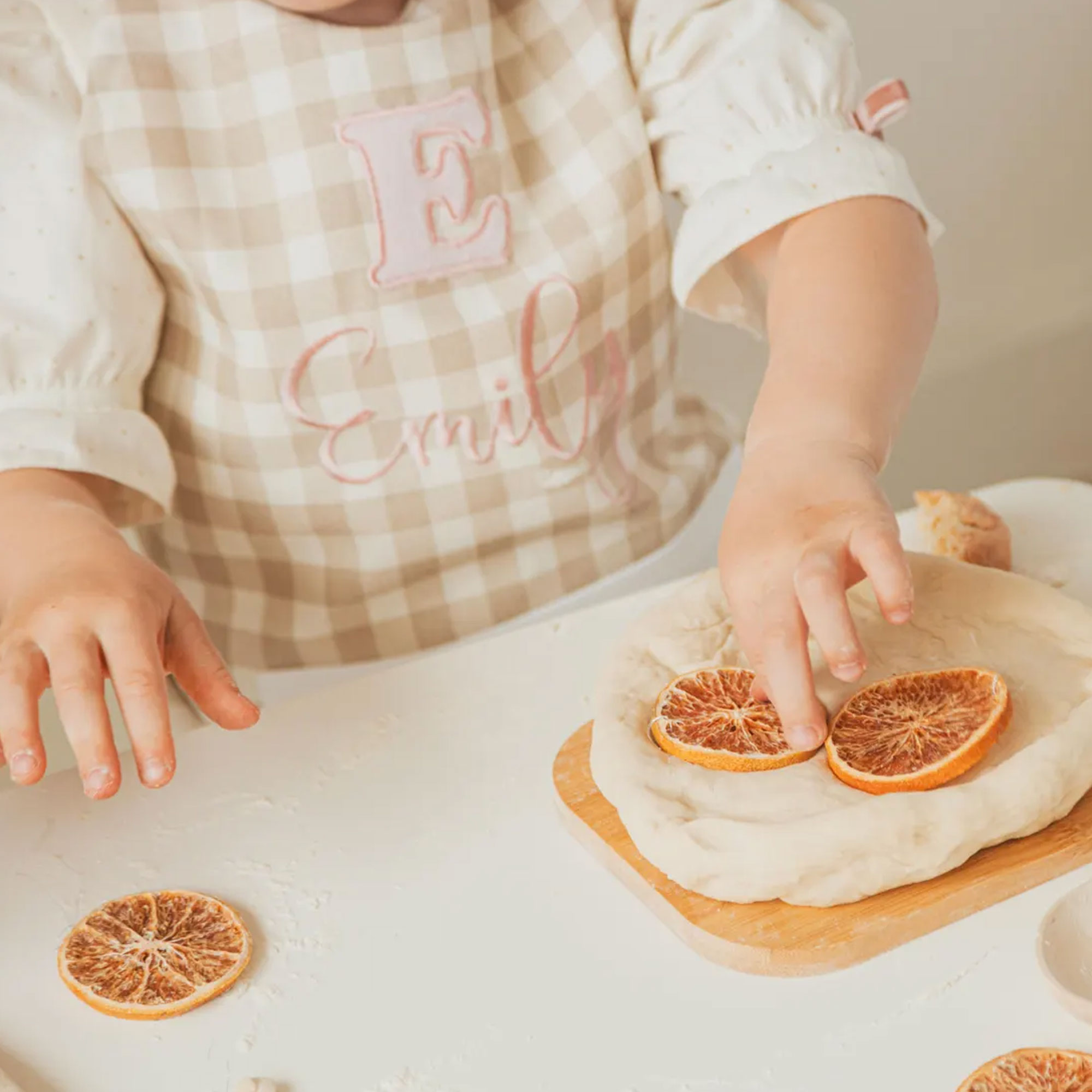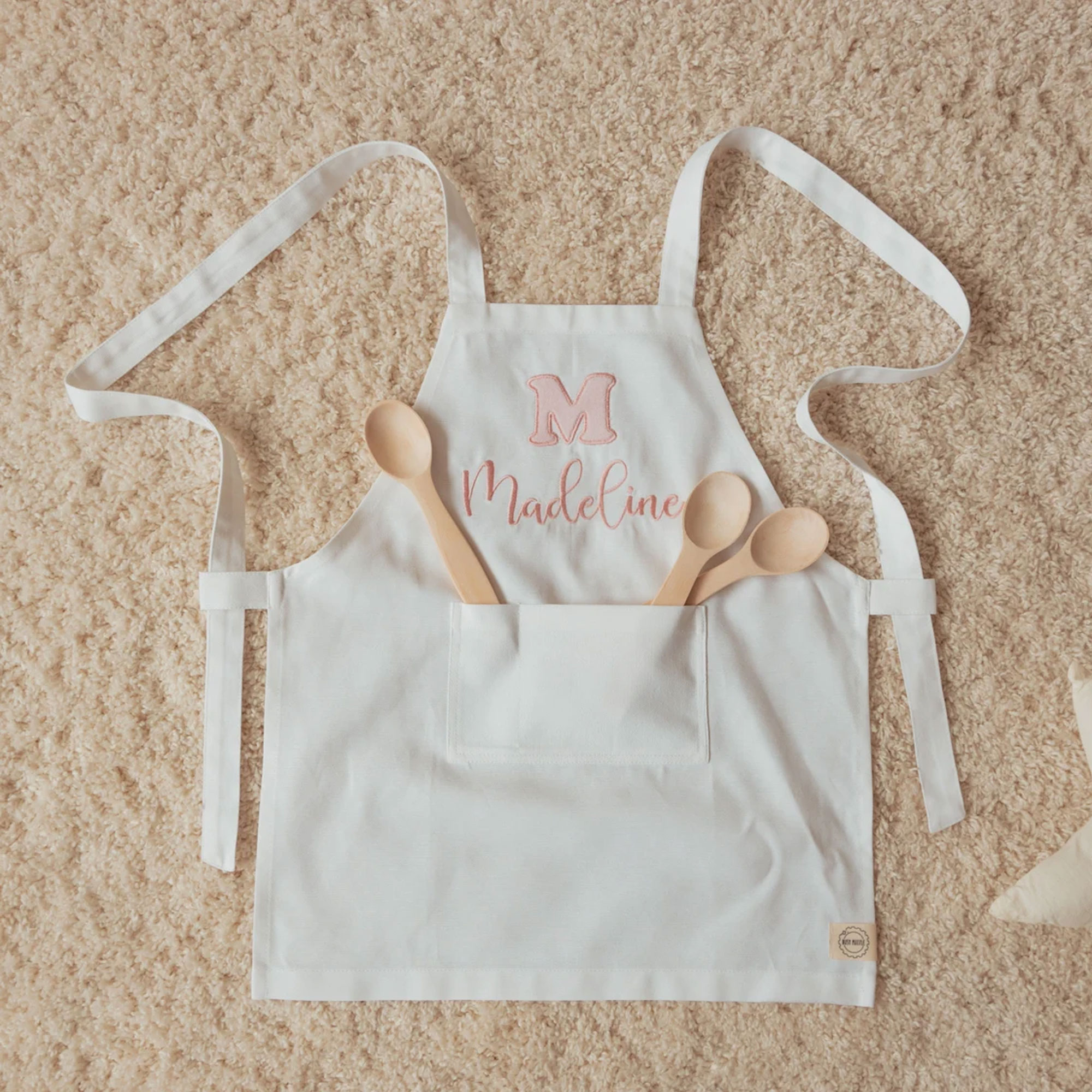 Custom Embroidered Name – Personalize the apron with a child’s or loved one’s name embroidered in a neat, elegant script. The custom detail adds a special touch, making it feel theirs—ideal for gifting or creating lasting memories during family cooking moments.