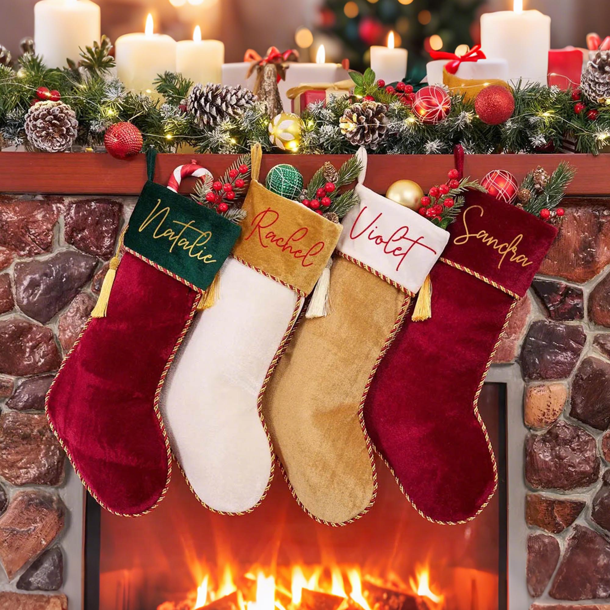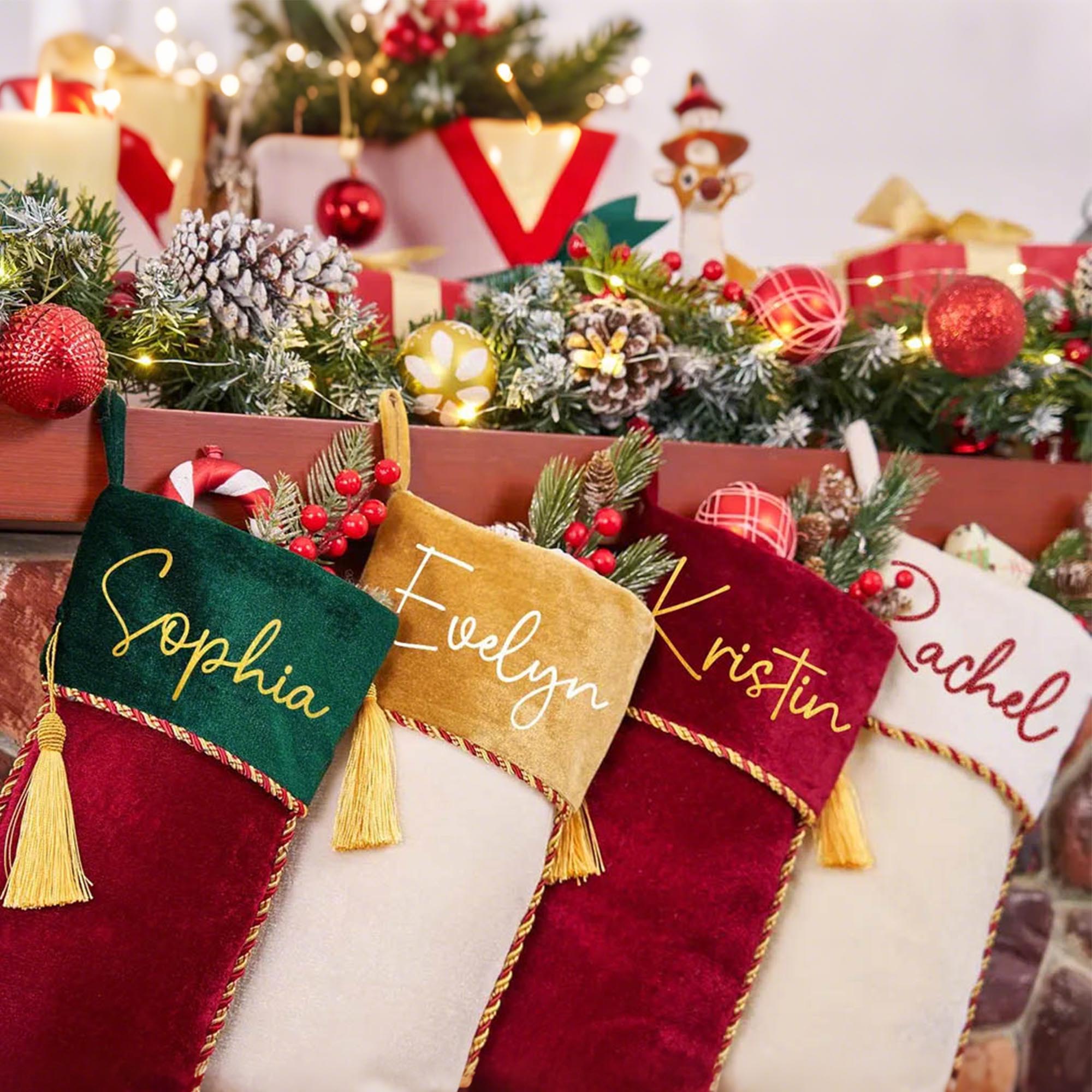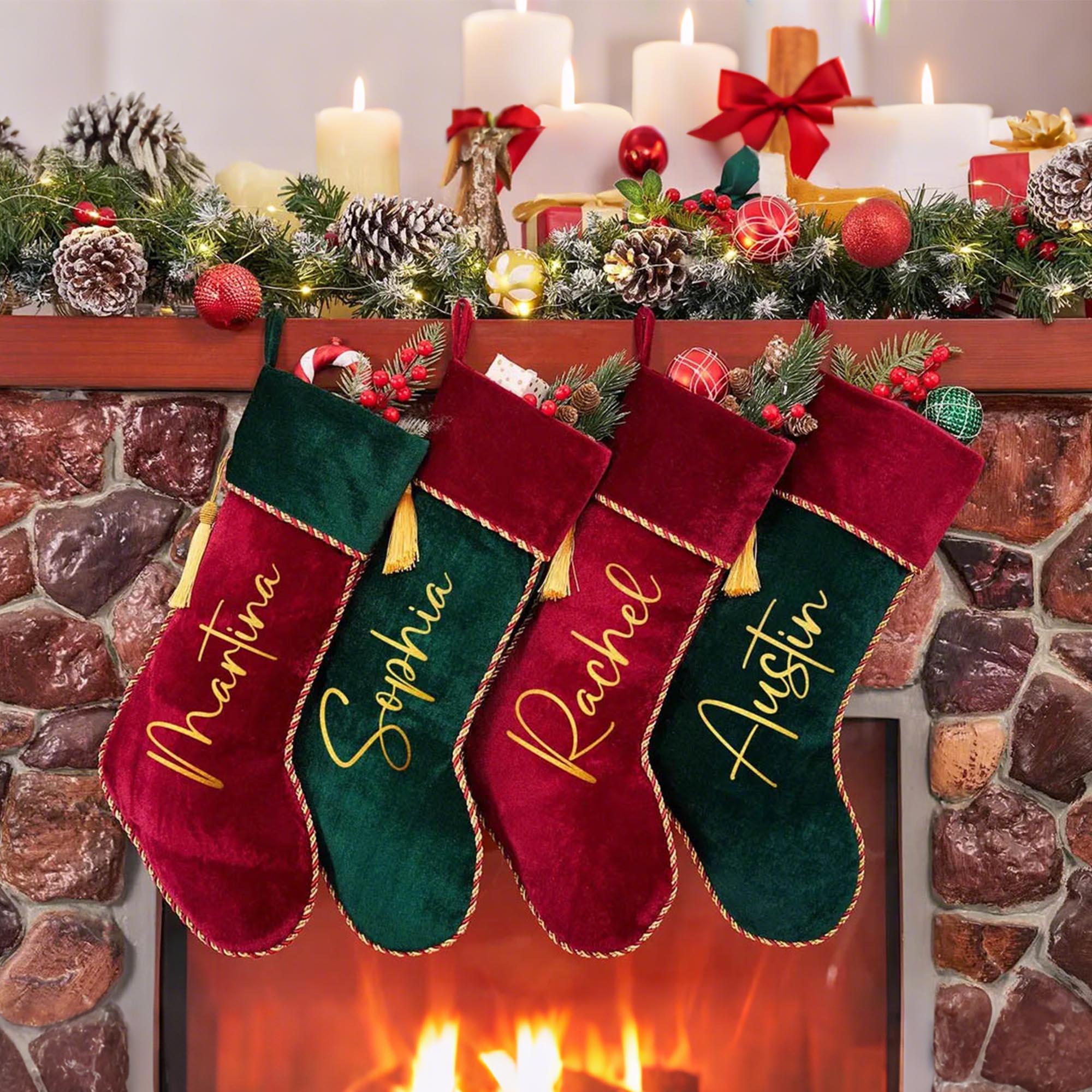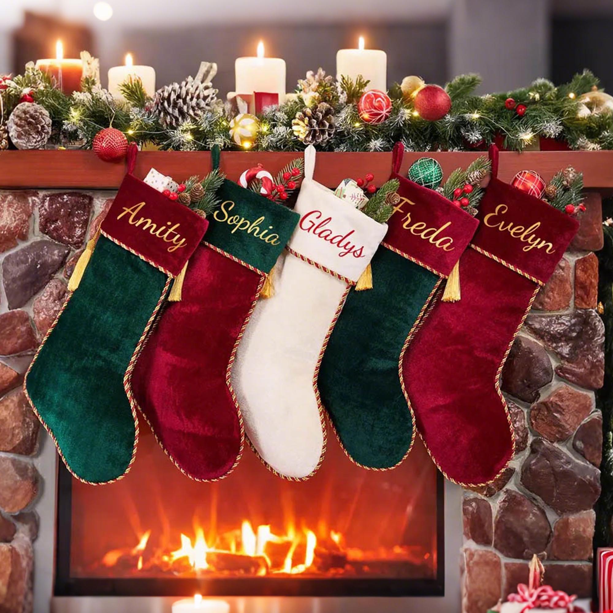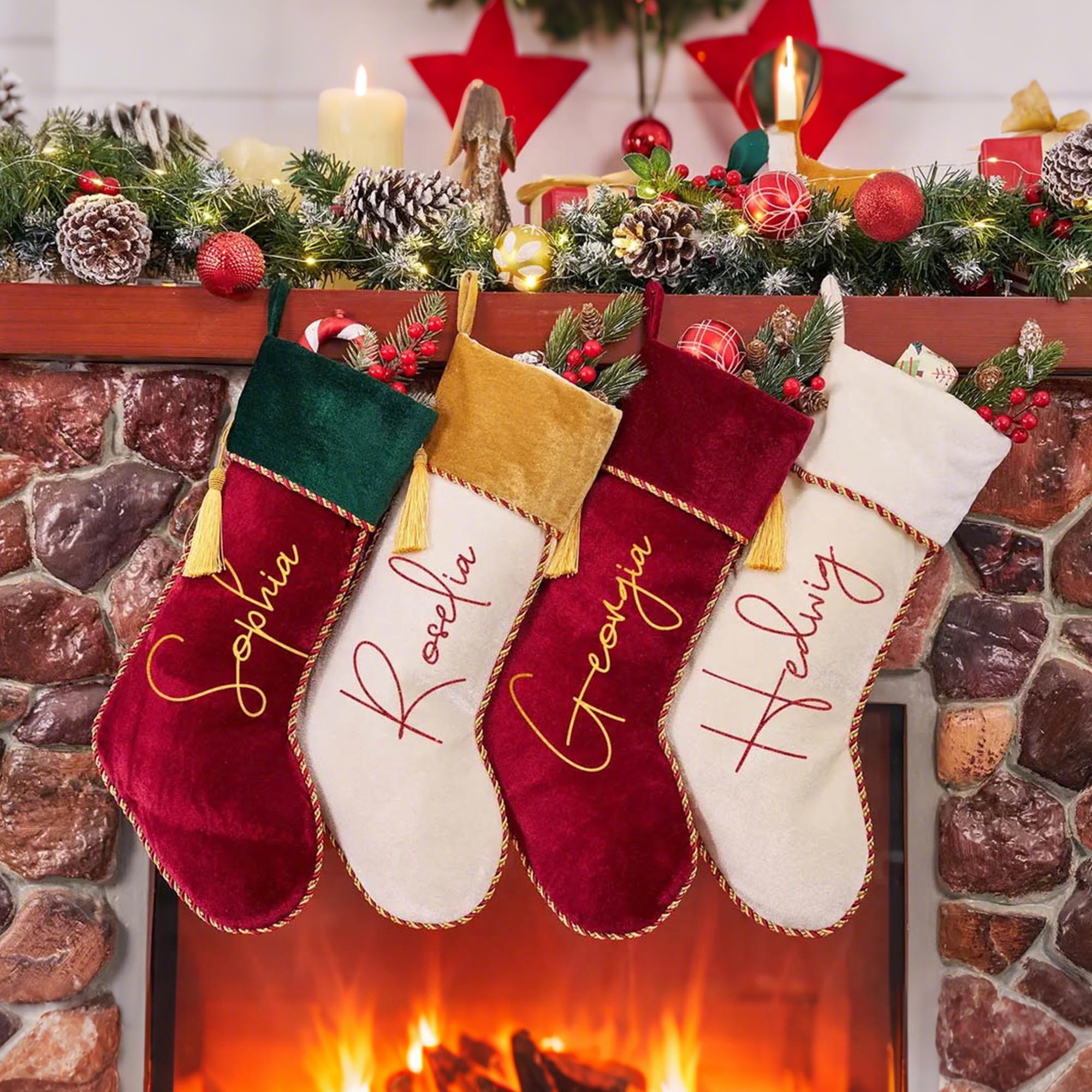 Custom Embroidery - Each stocking can be personalized with a family member's name, beautifully embroidered to make it unique. This customization adds a special touch, making the stocking feel personal and cherished.