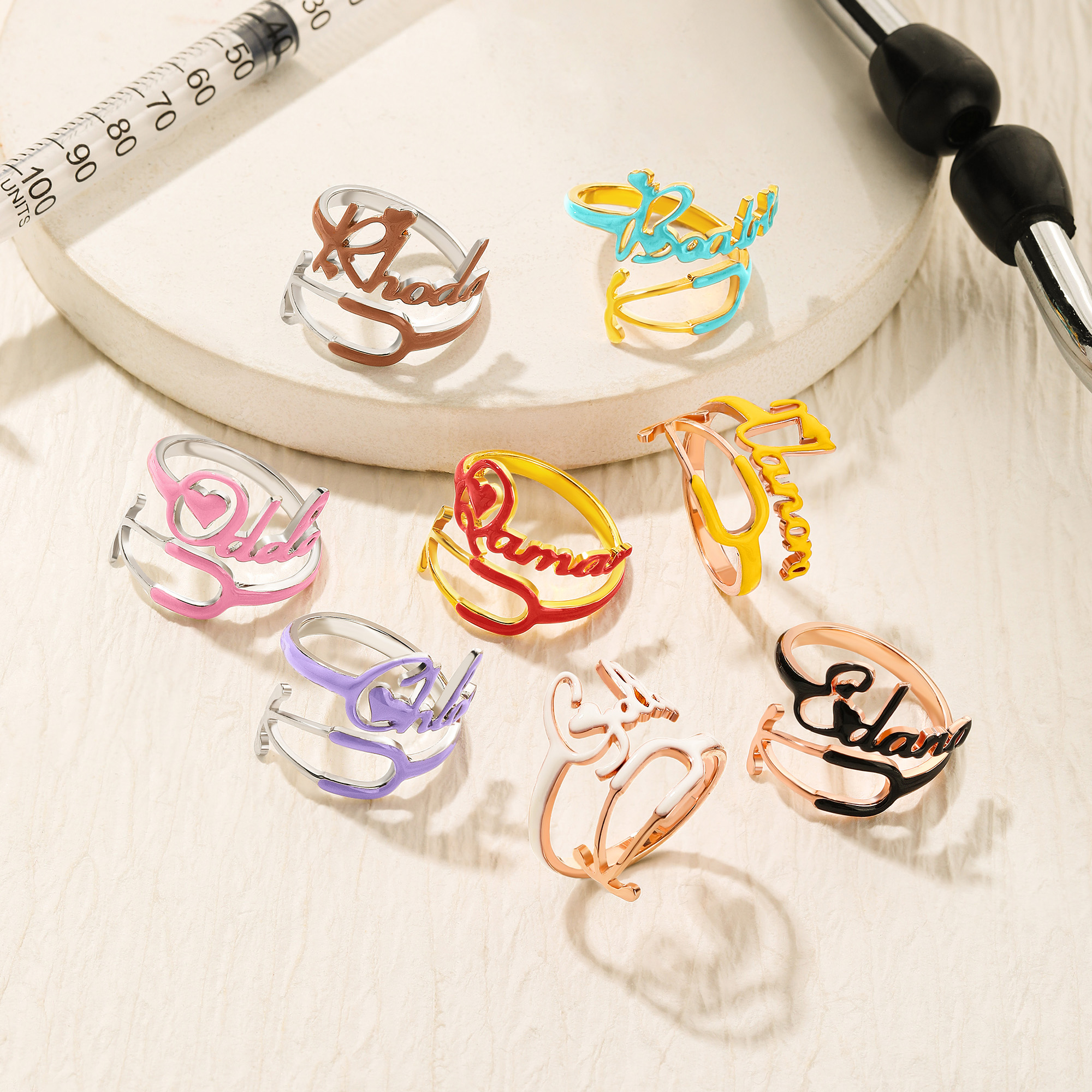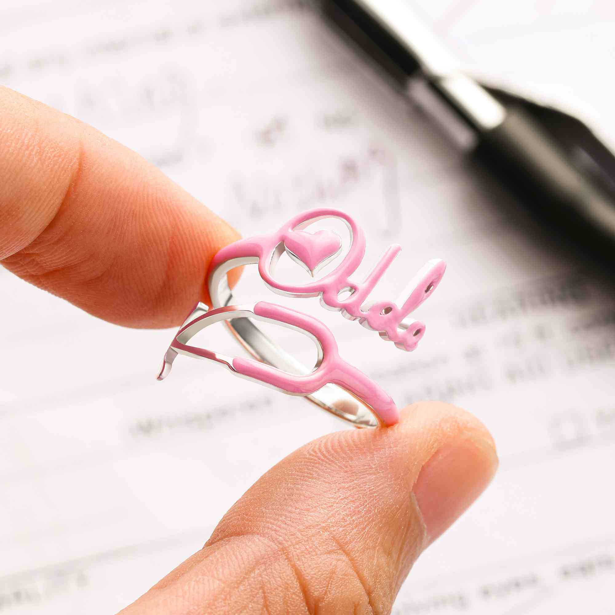 | Style | Personalized Enamel Stethoscope Ring with Name |