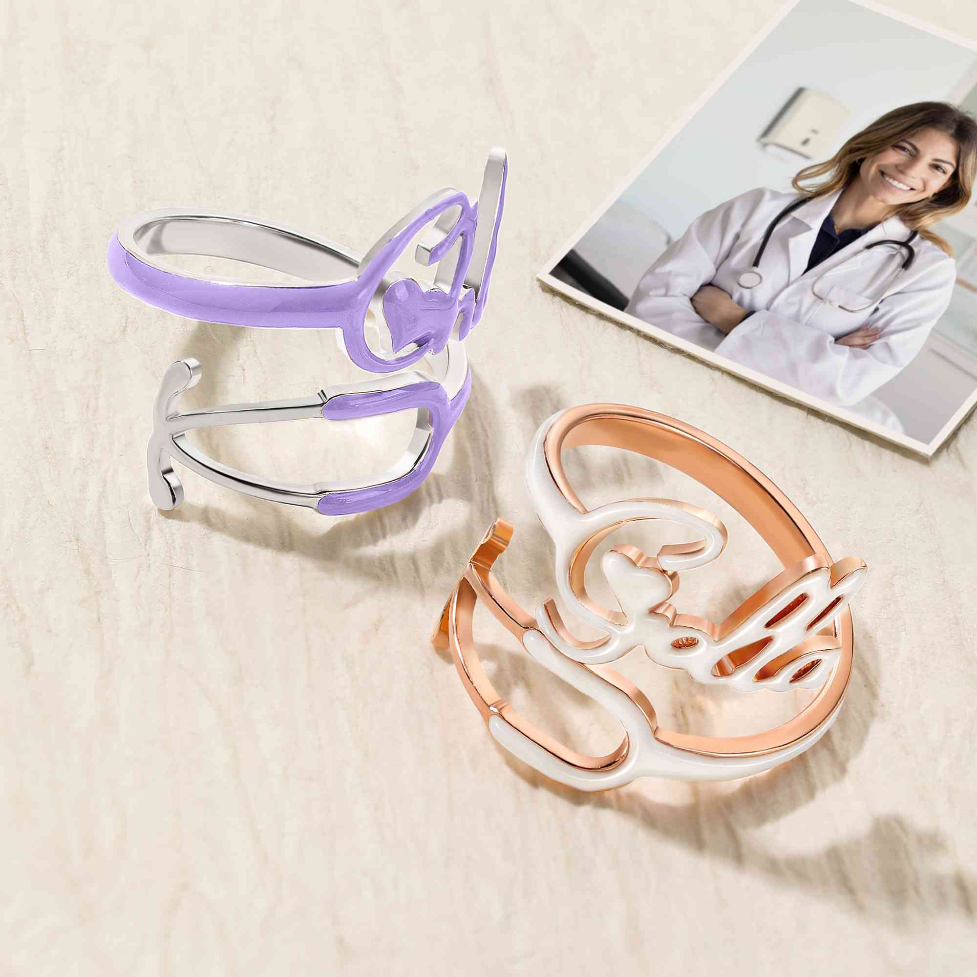 Elegant Stethoscope Design - This ring features a graceful stethoscope-shaped band, symbolizing compassion and dedication in the medical field. Its sleek and dainty design gives a professional yet feminine touch, making it a lovely reminder of the healing spirit carried by nurses and doctors.