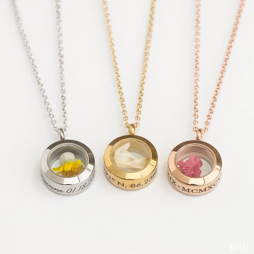 | Style | Personalized Engraved Ashes Locket Necklace with Name |