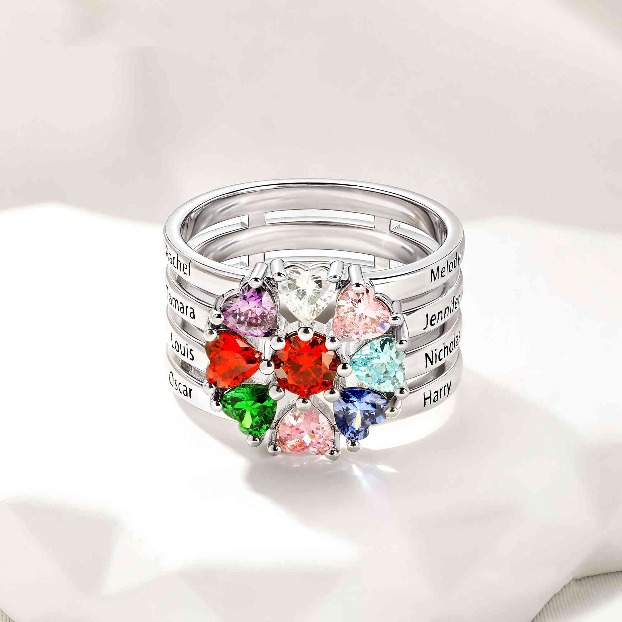 | Style | Personalized Engraved Heart Assortment Ring with 1-8 Birthstones |