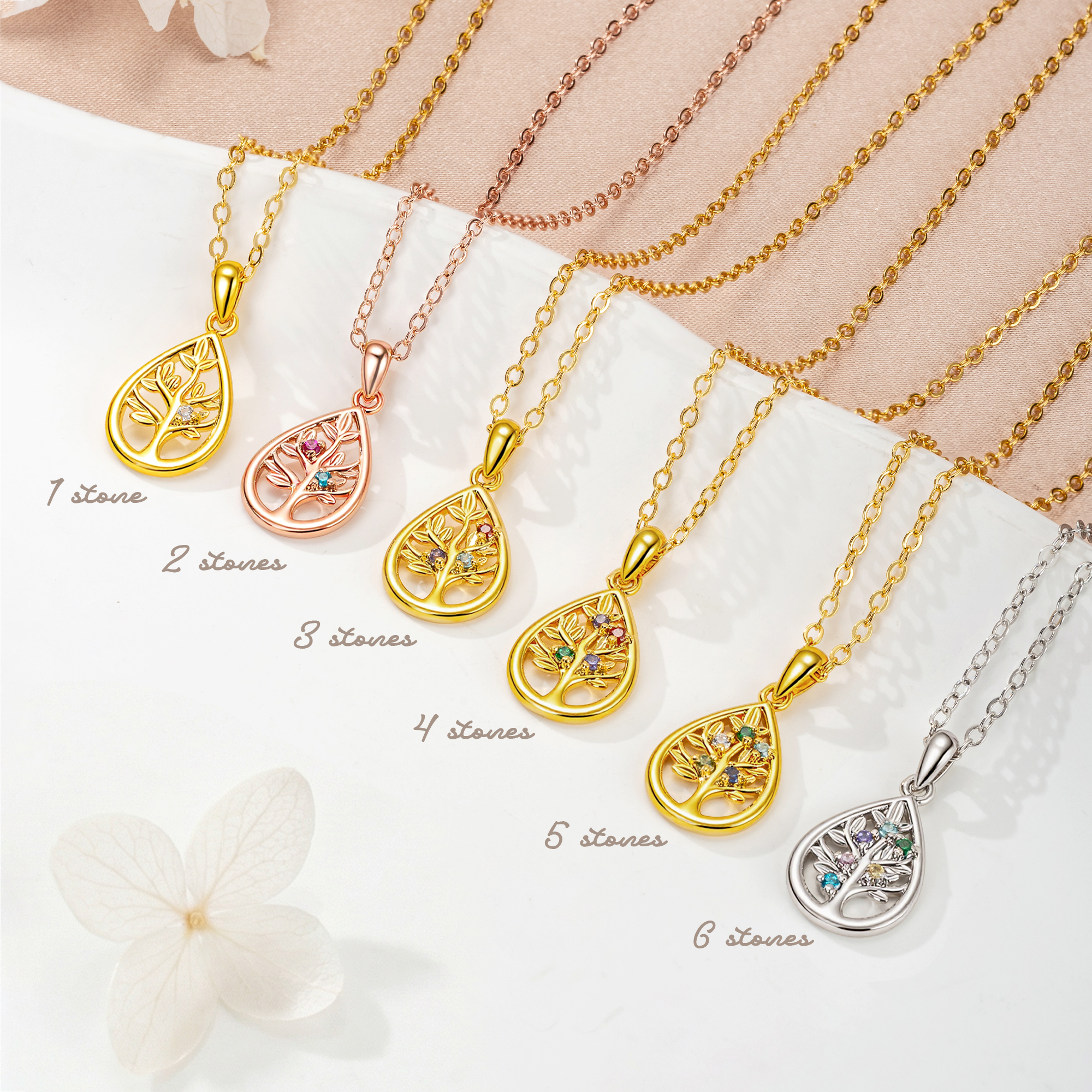 Personalized 1-6 Birthstones - Customize the necklace with up to six birthstones to represent children, grandchildren, or loved ones. This personal touch turns the necklace into a one-of-a-kind keepsake that celebrates the people who matter most.