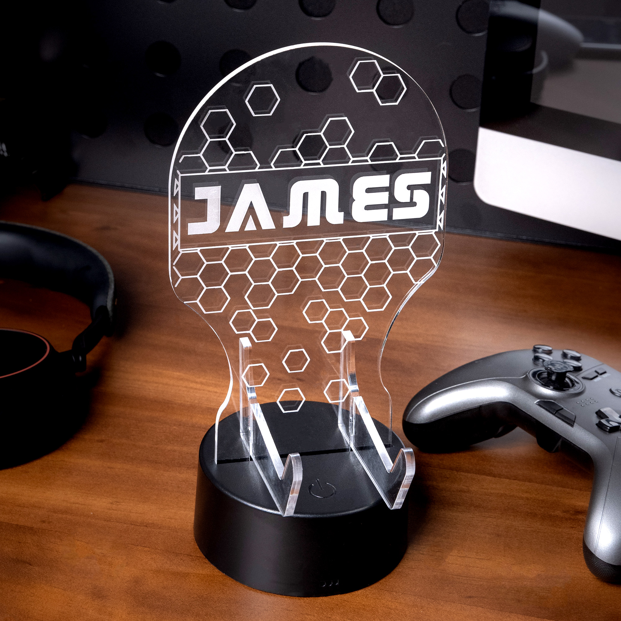 Personalized - This fun game controller and headphone stand is the perfect addition to any gamer's room! The center section is engraved with your chosen name or game username.