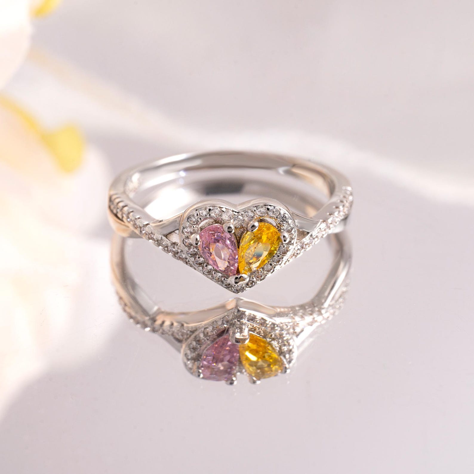 Meaningful Design - This exquisite ring features a heart-shaped design that beautifully symbolizes the bond between a mother and daughter. The double birthstones represent each person's unique birth month, making it a deeply personal piece of jewelry.