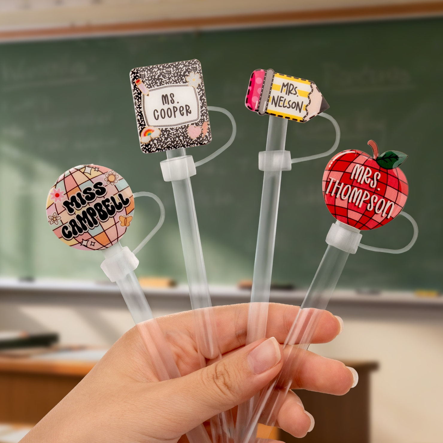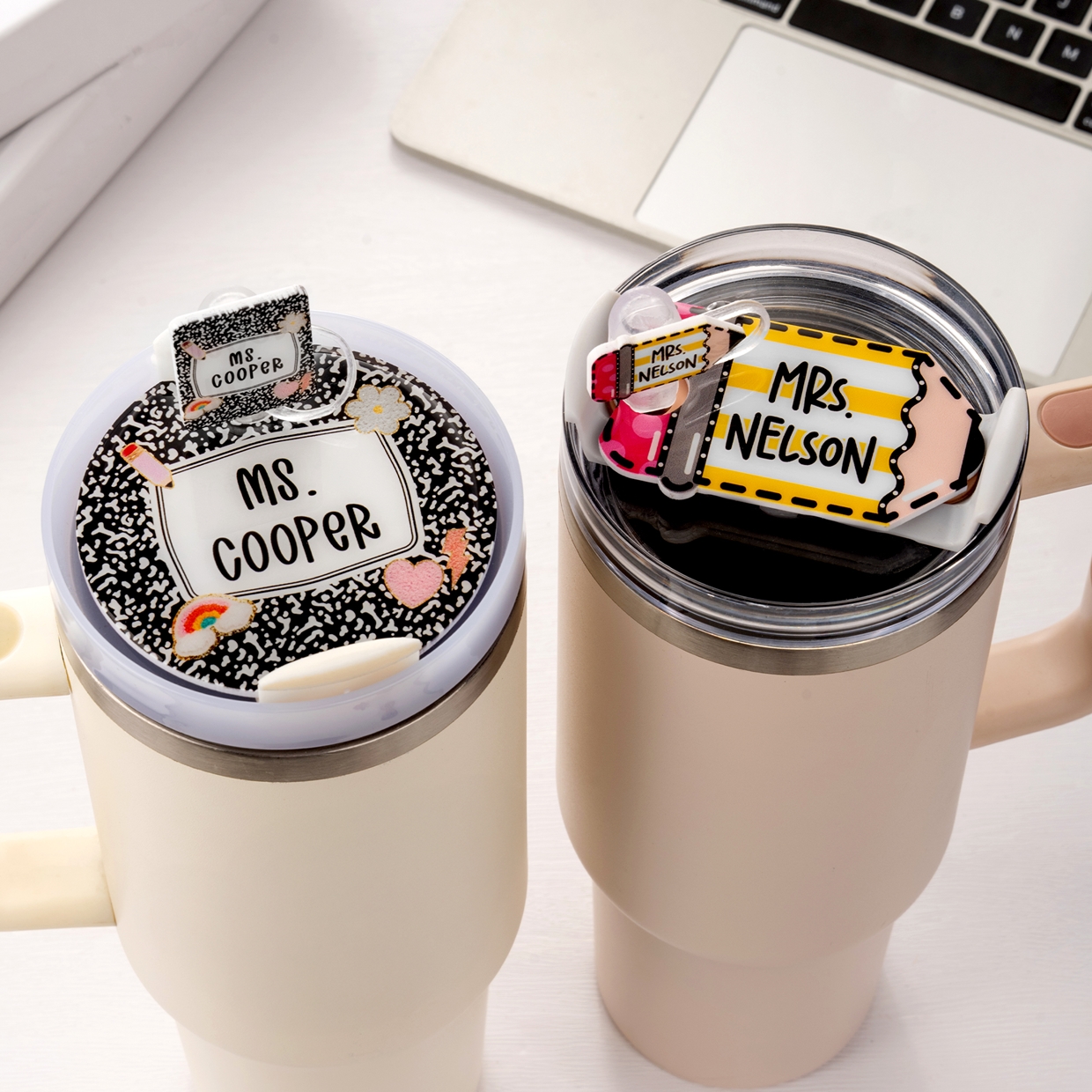 Thoughtful Practicality - The straw topper keeps dust and debris out, maintaining hygiene and freshness. Meanwhile, the custom nameplate helps teachers quickly identify their drinks, preventing confusion. Designed for easy attachment, this set brings both convenience and charm to any daily routine.
