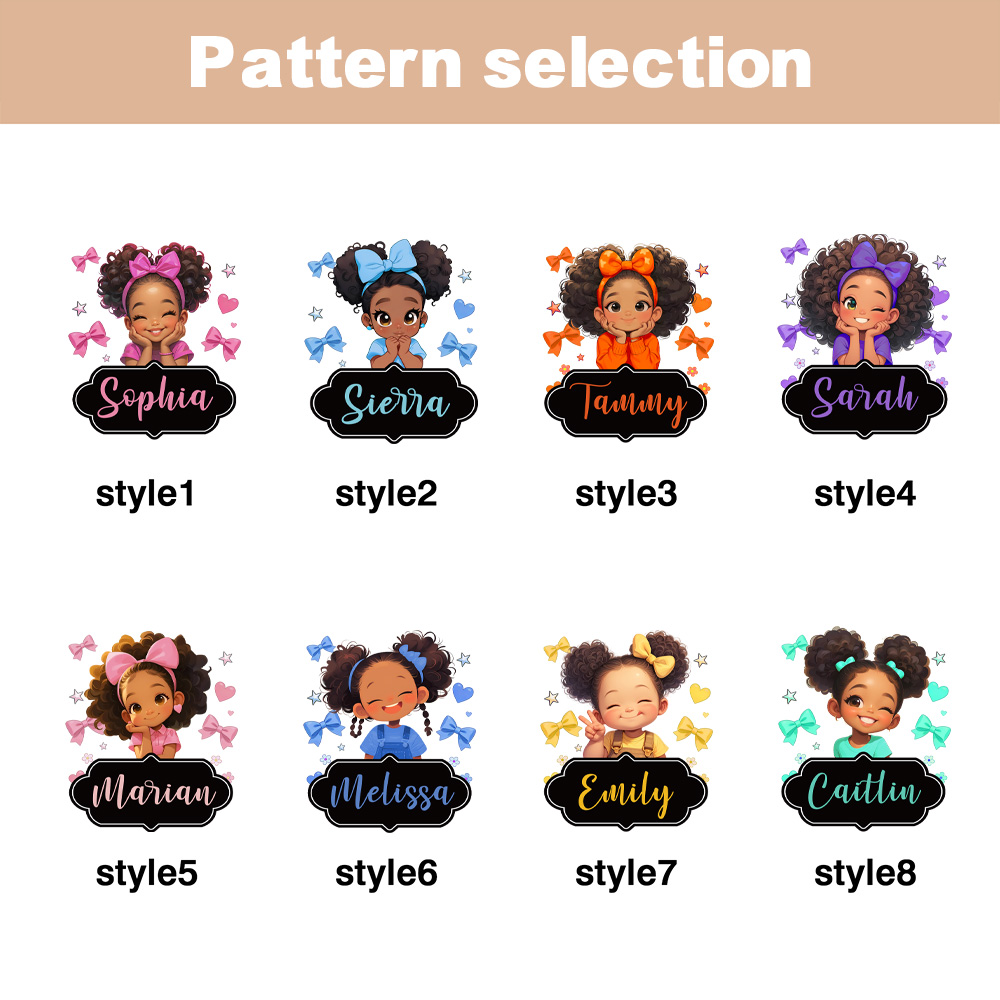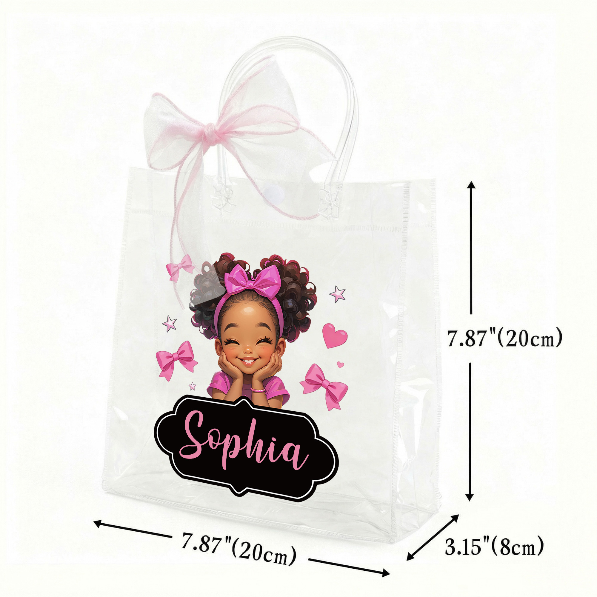 | Style | Custom Name Cartoon Black Little Girl Gift Bag with Pink Bow Ribbon |