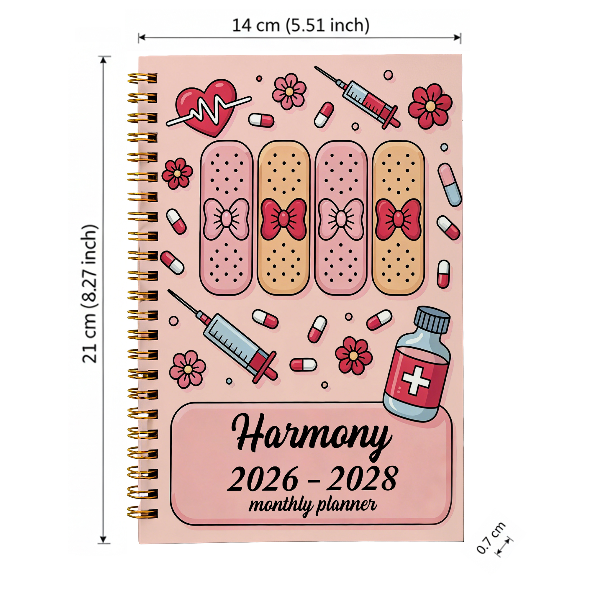 Personalized Name Cartoon Medical Device Planner 2026-2028, A5 Spiral Notebook with Weekly & Monthly Planning Pages, Birthday Gift for Nurses/Doctors