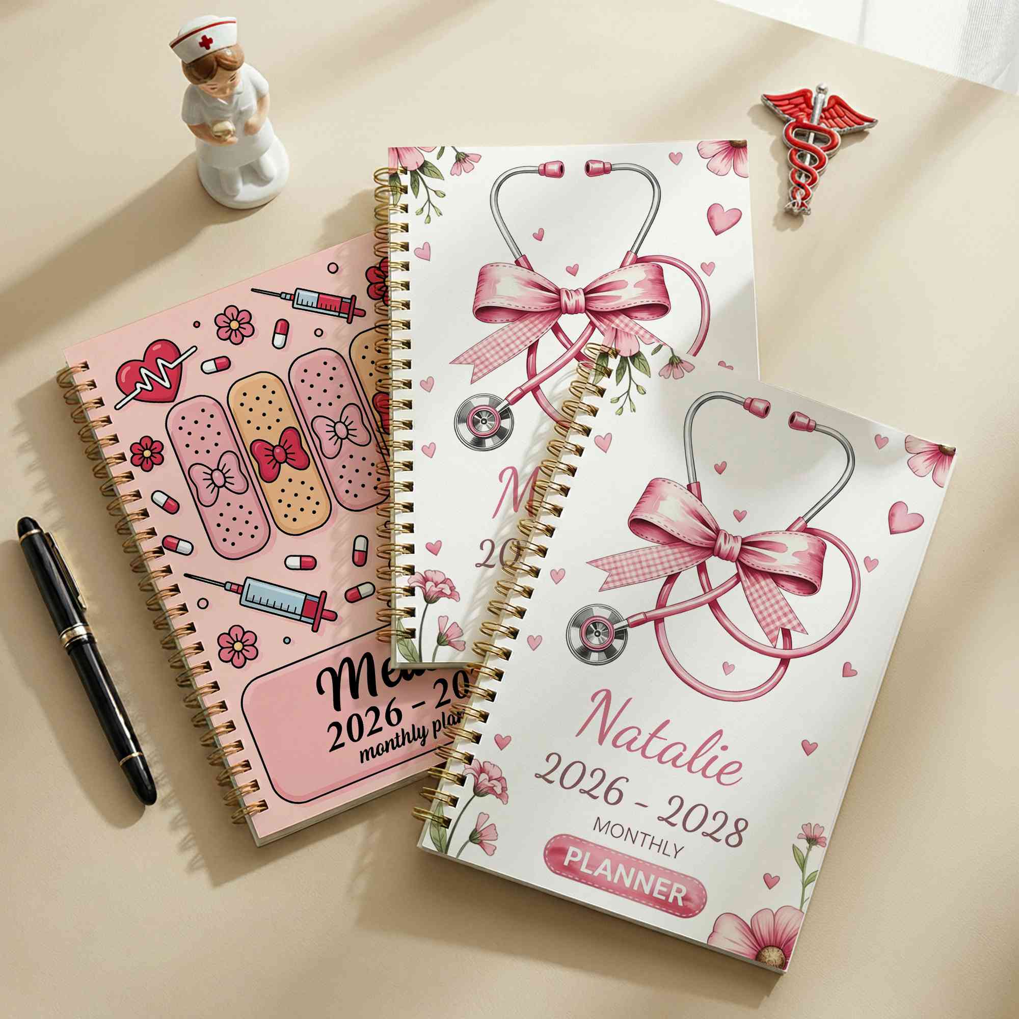 Custom Medical-Inspired Design - This planner is decorated with cute cartoon medical tools inspired by the everyday work of healthcare professionals. The clean and calming design reflects the caring spirit of doctors and nurses while bringing a cheerful touch to daily planning. Personalized with a custom name, it becomes a one-of-a-kind planner that adds a personal and meaningful touch to every schedule.