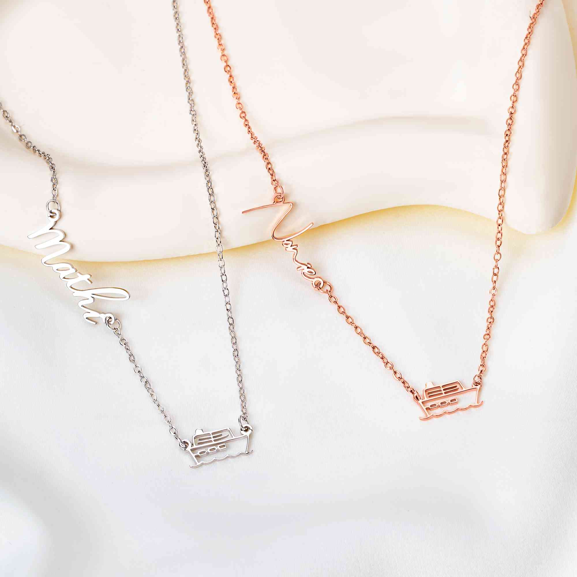 Nautical-Inspired Style - This cruise ship necklace captures the spirit of the sea with its clean silhouette and sideways name design, giving it a fresh and dainty look that suits anyone who loves travel or ocean life.