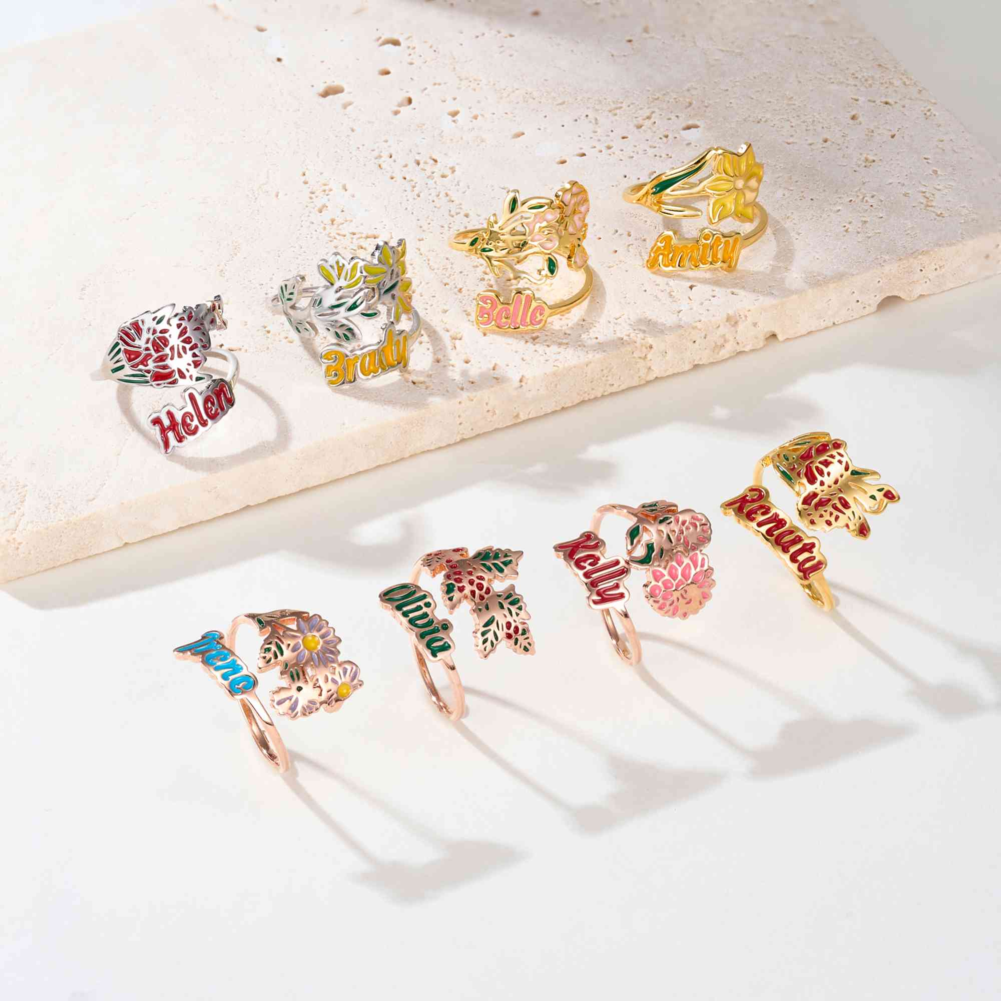 Custom Name & Birth Flower - Add a name and choose the birth flower that matches the special person you’re celebrating. Each detail brings a personal story, turning the ring into a heartfelt keepsake that feels unique and thoughtful.