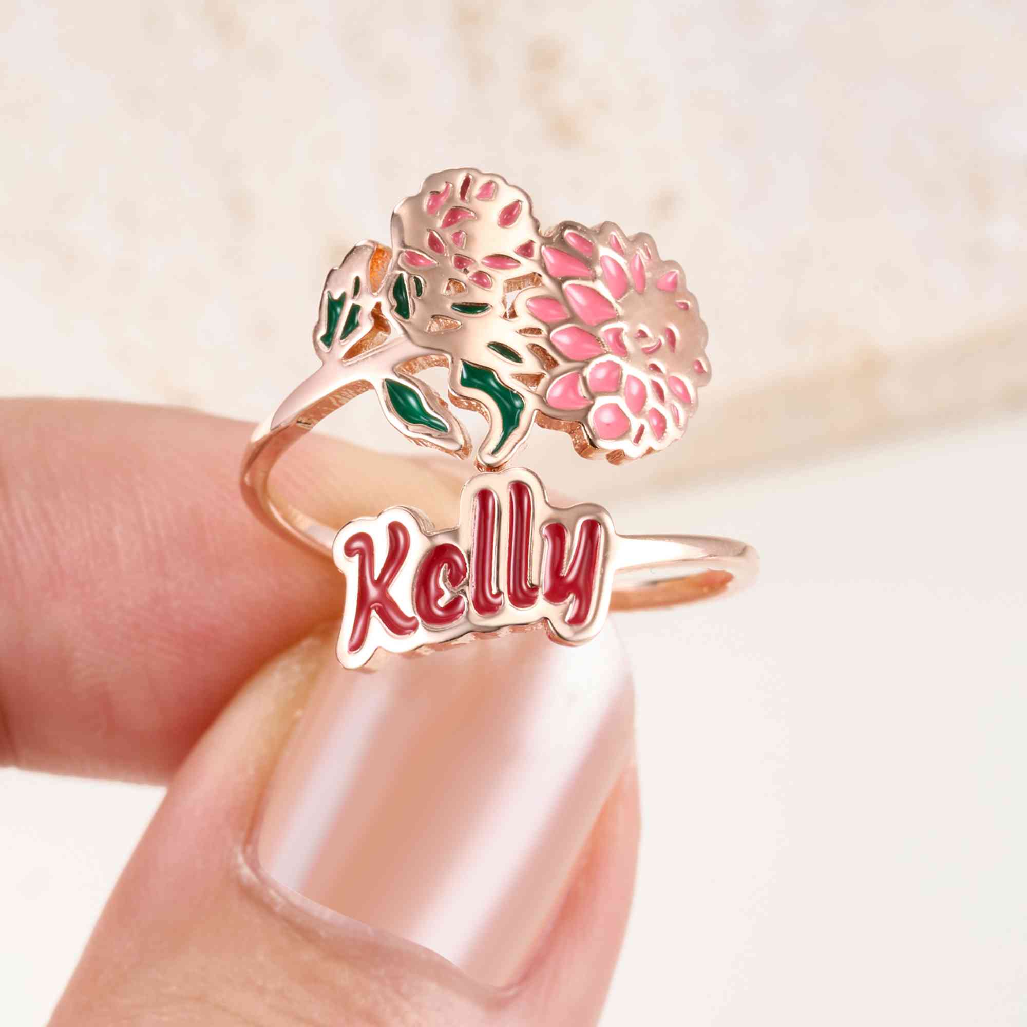 Personalized Enamel Birth Flower Ring with Name, Sterling Silver 925 Women's Floral Adjustable Ring, Birthday/Mother's Day Gift for Her/Mom/Grandma
