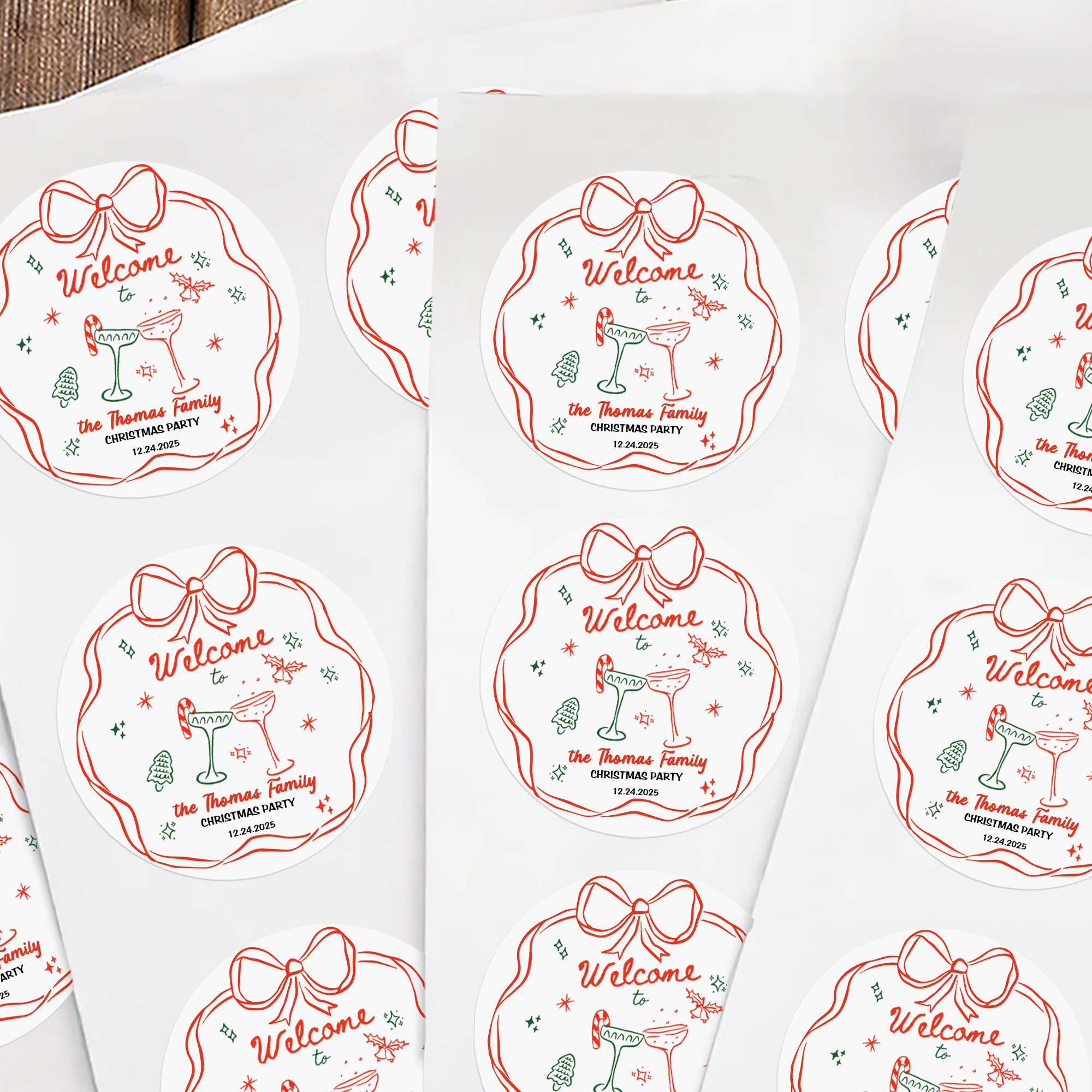 Charming Hand-Painted Design - Each round Christmas sticker features a whimsical hand-painted style with joyful details like Christmas tree, bells, cocktail glasses and festive knots to celebrate family party. The circular shape and cheerful holiday palette bring warmth and charm to every gift, envelope, or card, capturing the spirit of togetherness during the season.