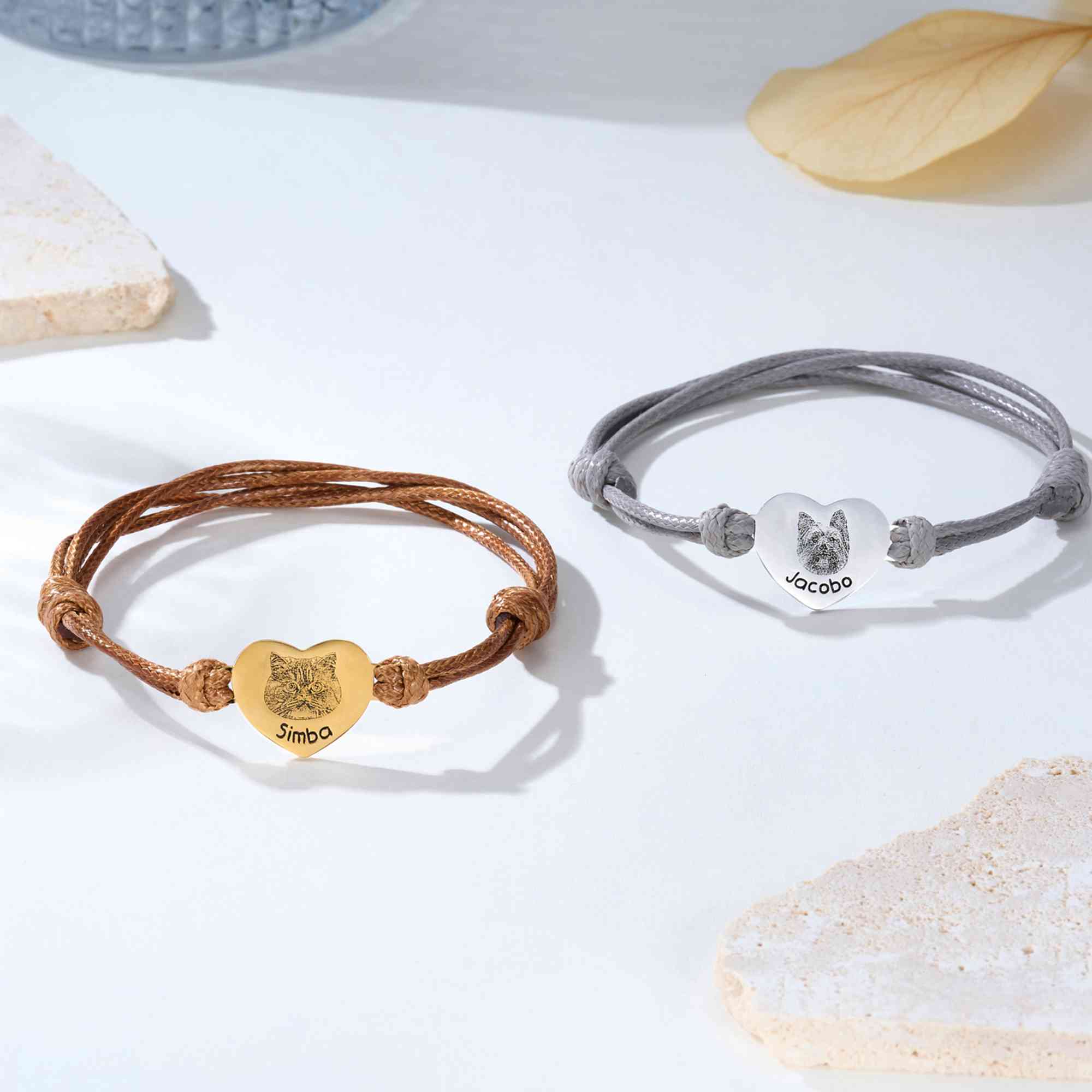 Heartfelt Pet Portrait Design - This bracelet features a custom pet portrait on a sweet heart charm, creating a warm reminder of the bond you share with your dog or cat. Its simple, meaningful style keeps your pet’s face close to you wherever you go.