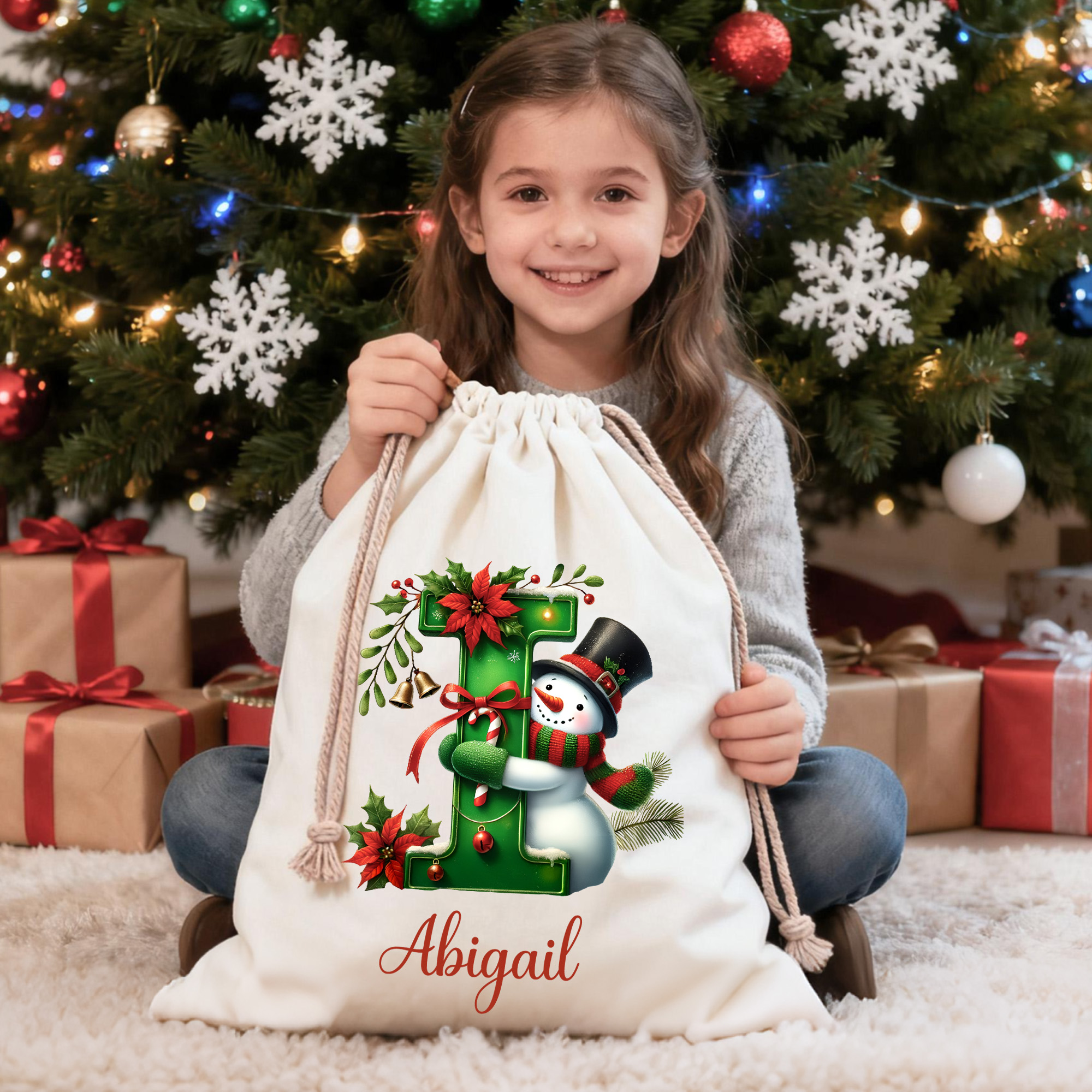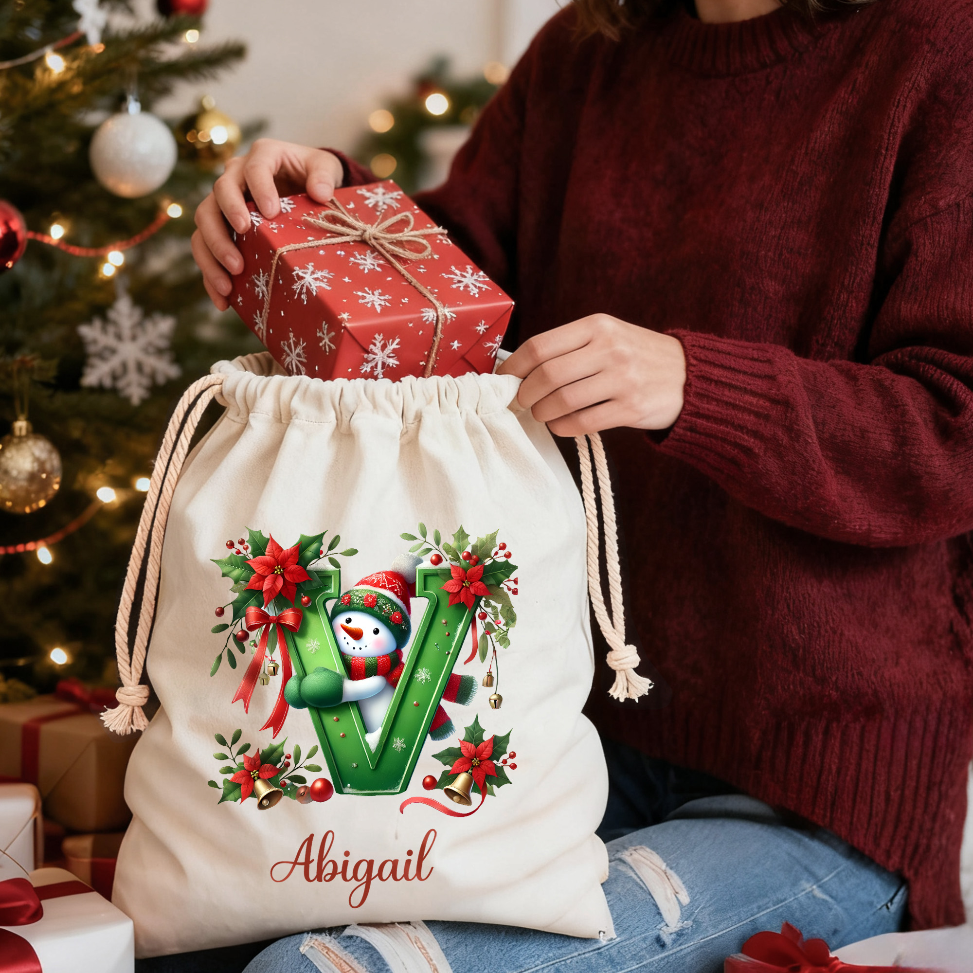 | Style | Personalized Name Snowman Alphabet Christmas Gift Bag |