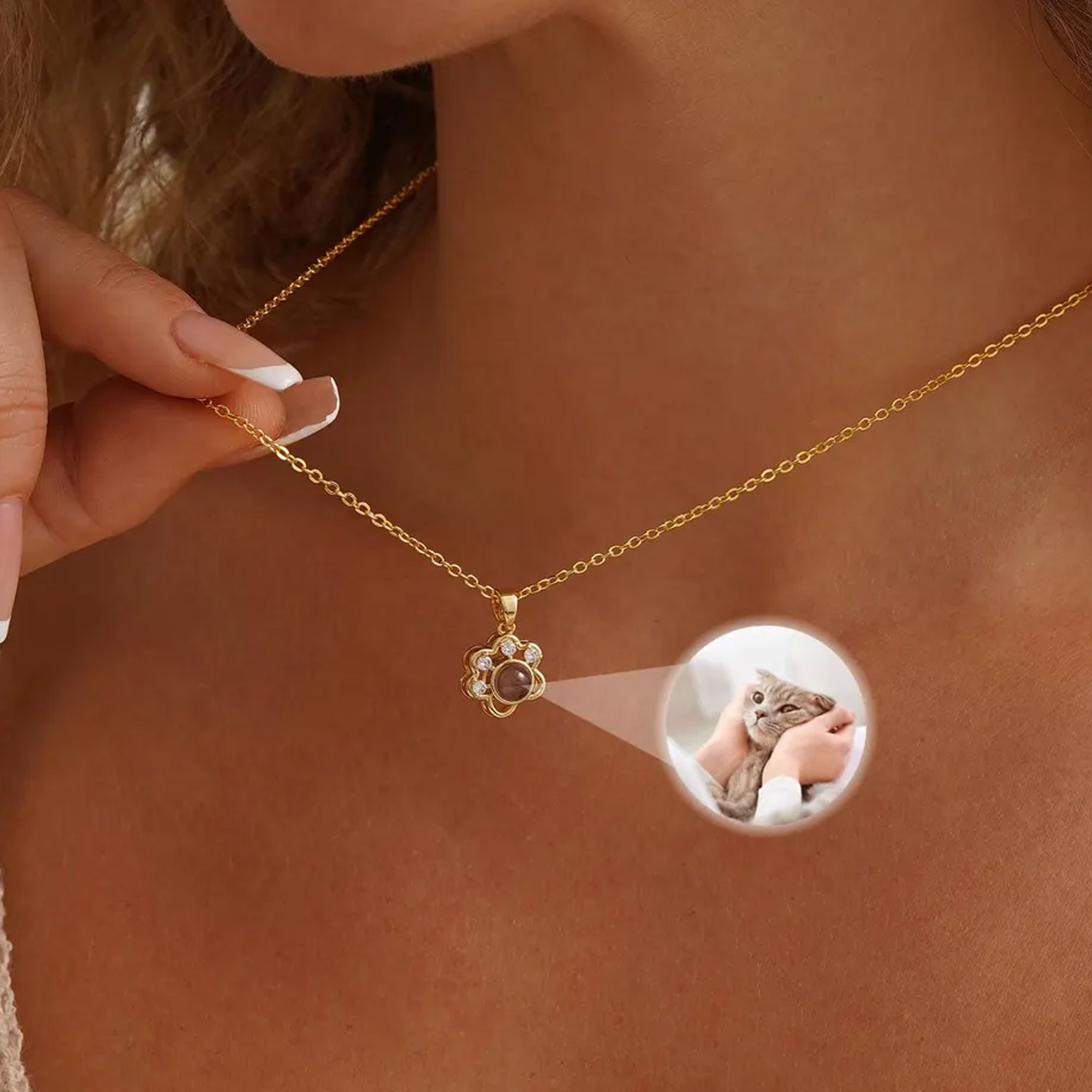 | Style | Personalized Pet Paw Projection Photo Necklace |