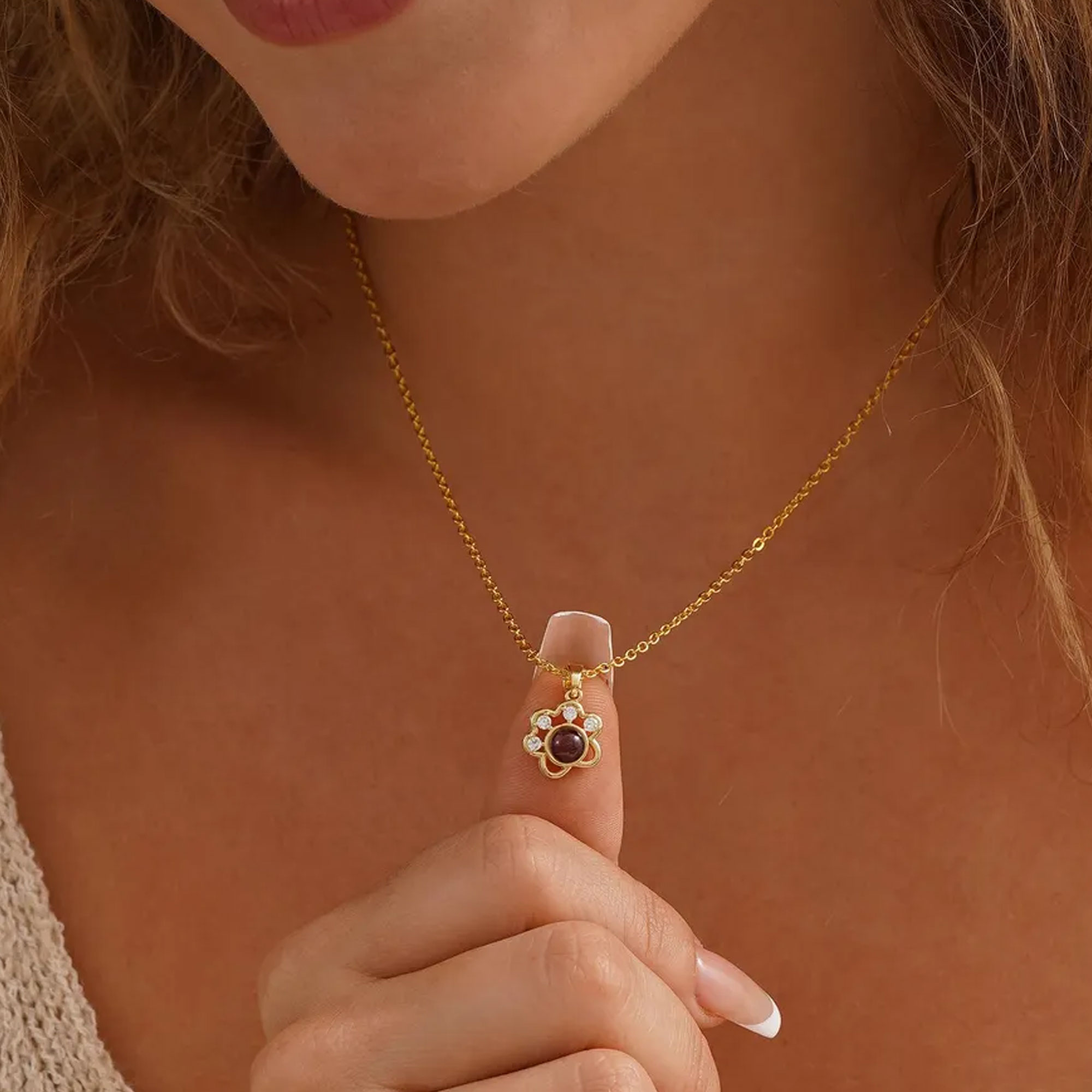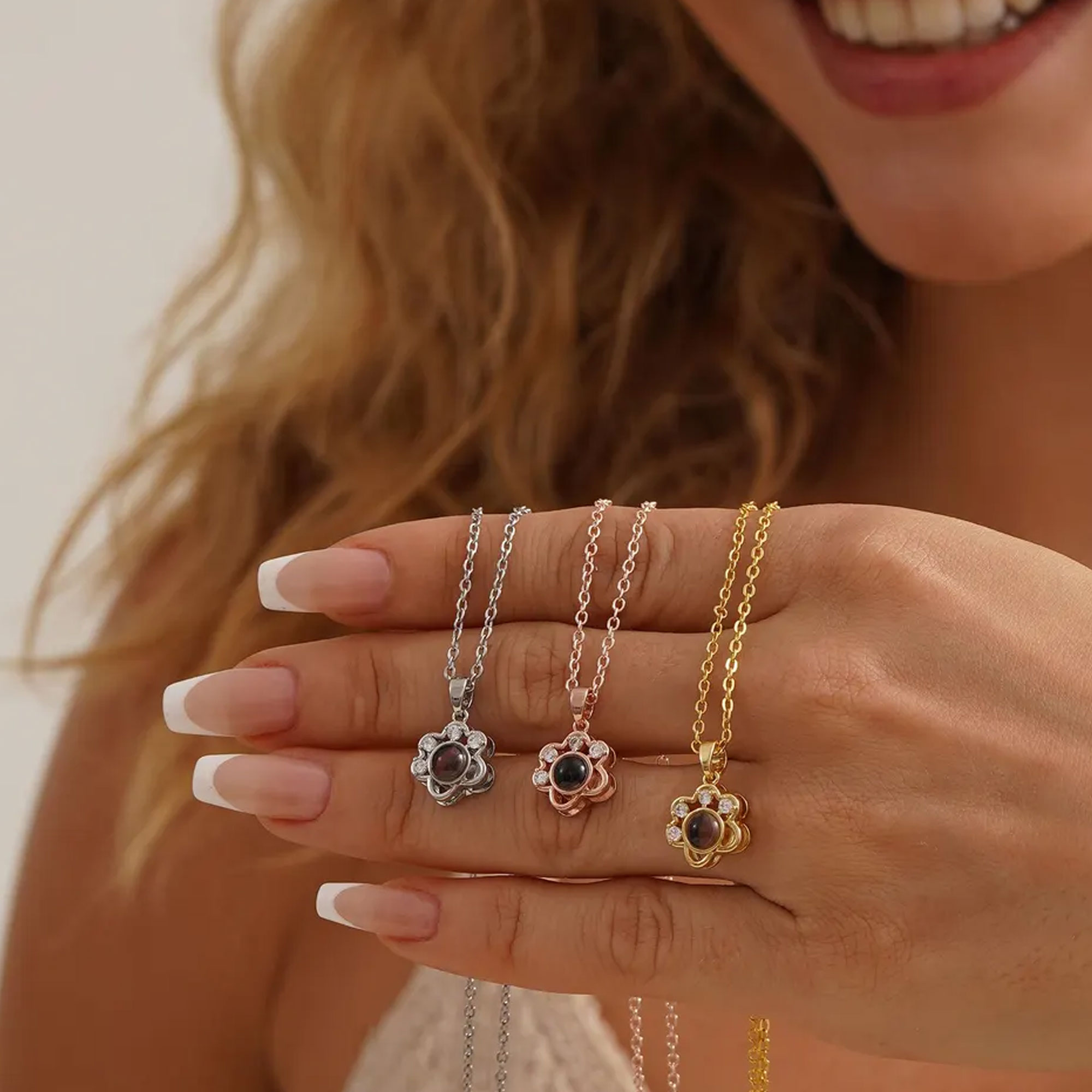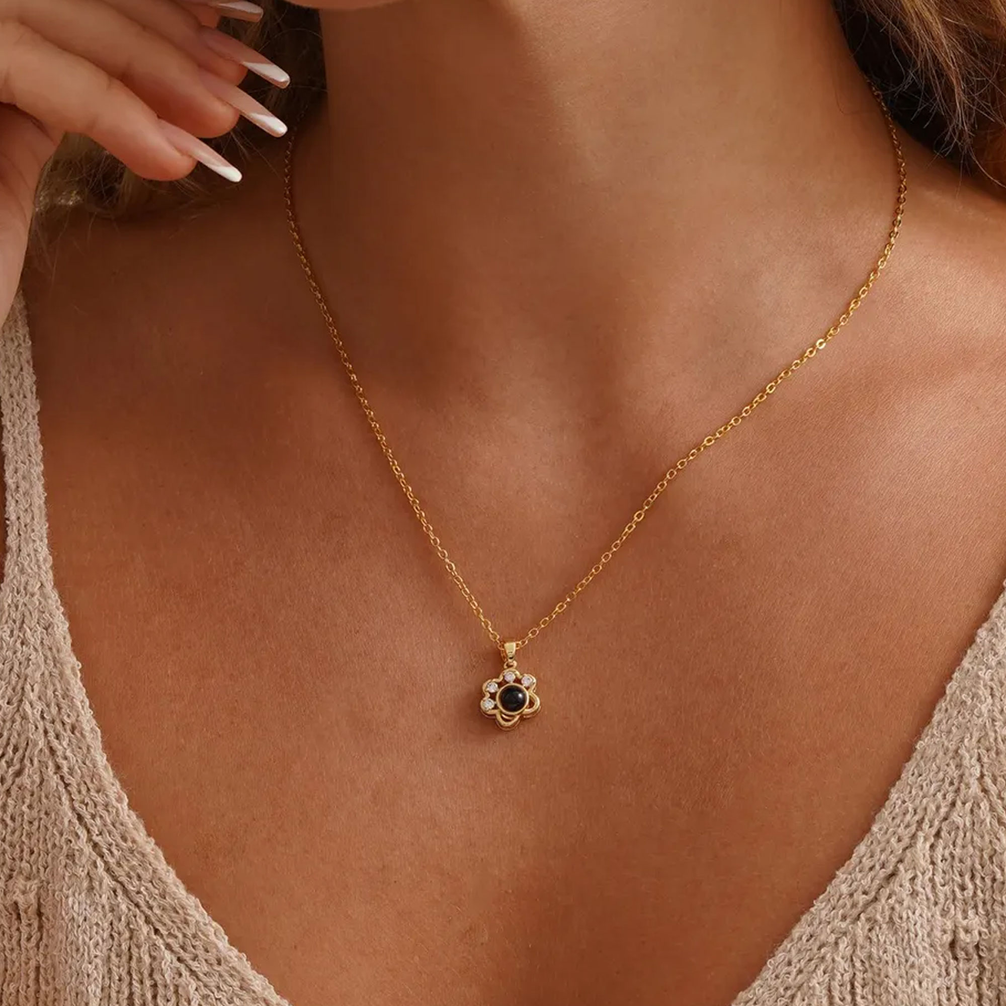 Personalized Photo Integration – The photo appears as if projected from within the pendant’s center, visible through the transparent dome without glare or distortion, preserving emotional detail while resisting fading from daily exposure to light and skin contact.