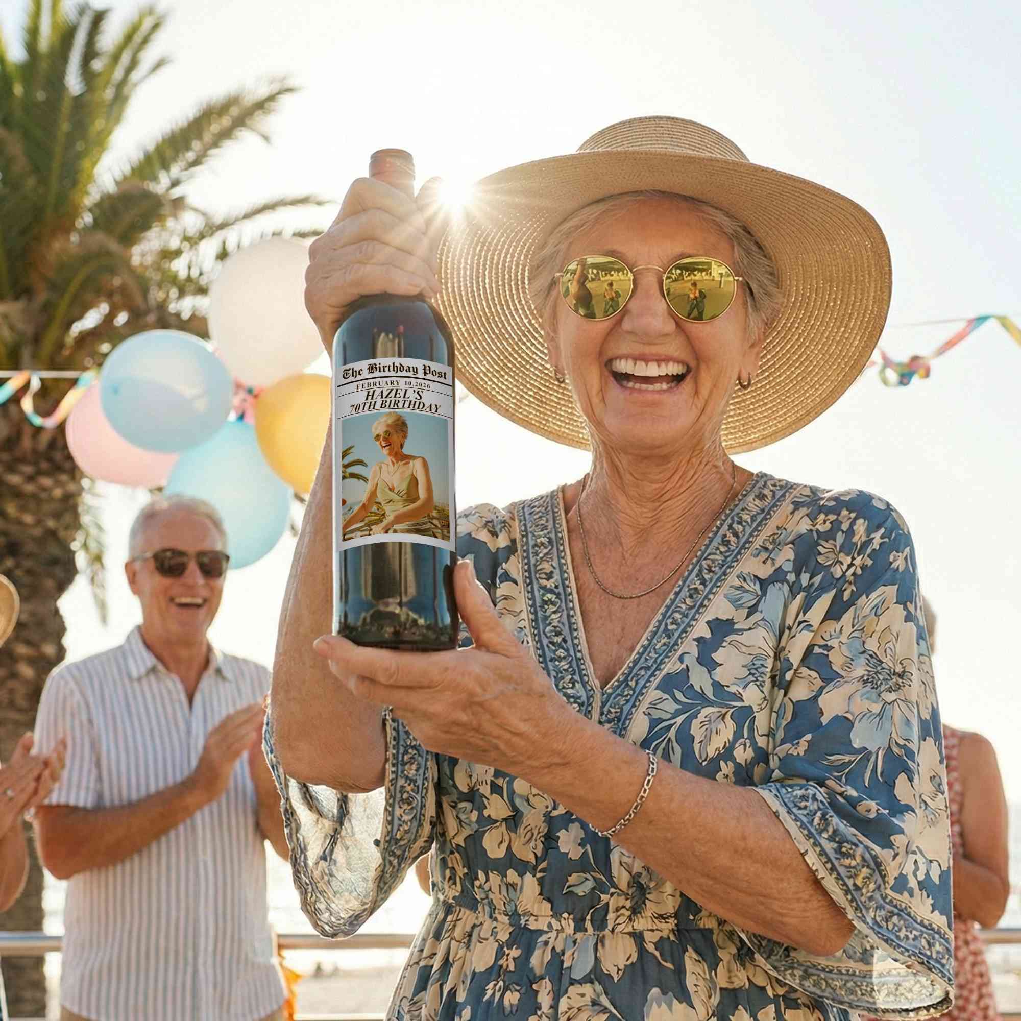 | Style | Personalized Photo & Name Birthday Newspaper Wine Stickers with Date |