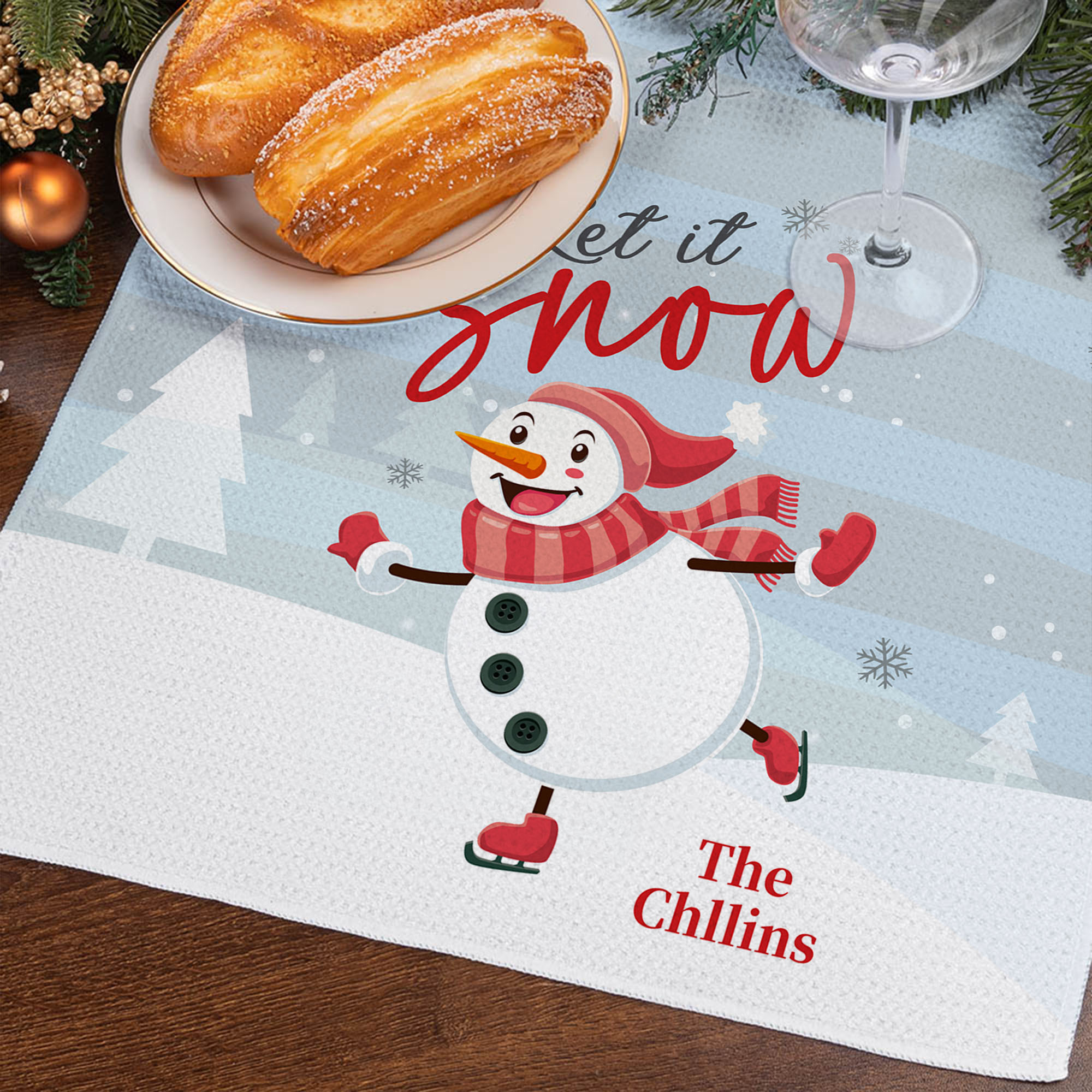 | Style | Personalized Skating Snowman Christmas Waffle Weave Dish Towel |