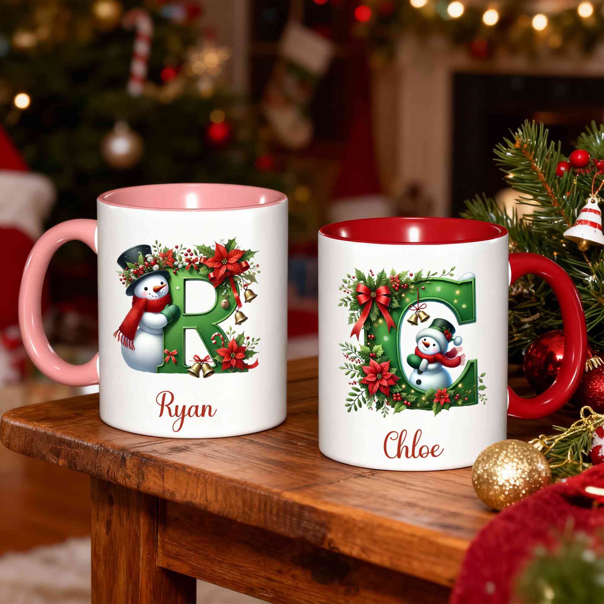 Snowman Alphabet Design - Each mug features an adorable snowman paired with a festive alphabet initial, bringing warmth and cheer to every sip. The playful design adds a joyful holiday touch that brightens up your coffee corner and perfectly fits the Christmas spirit.