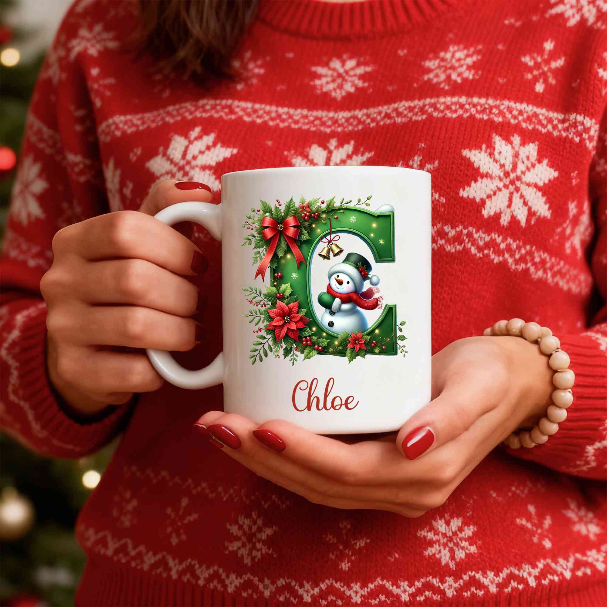 | Style | Personalized Snowman Alphabet Christmas Mug with Name |