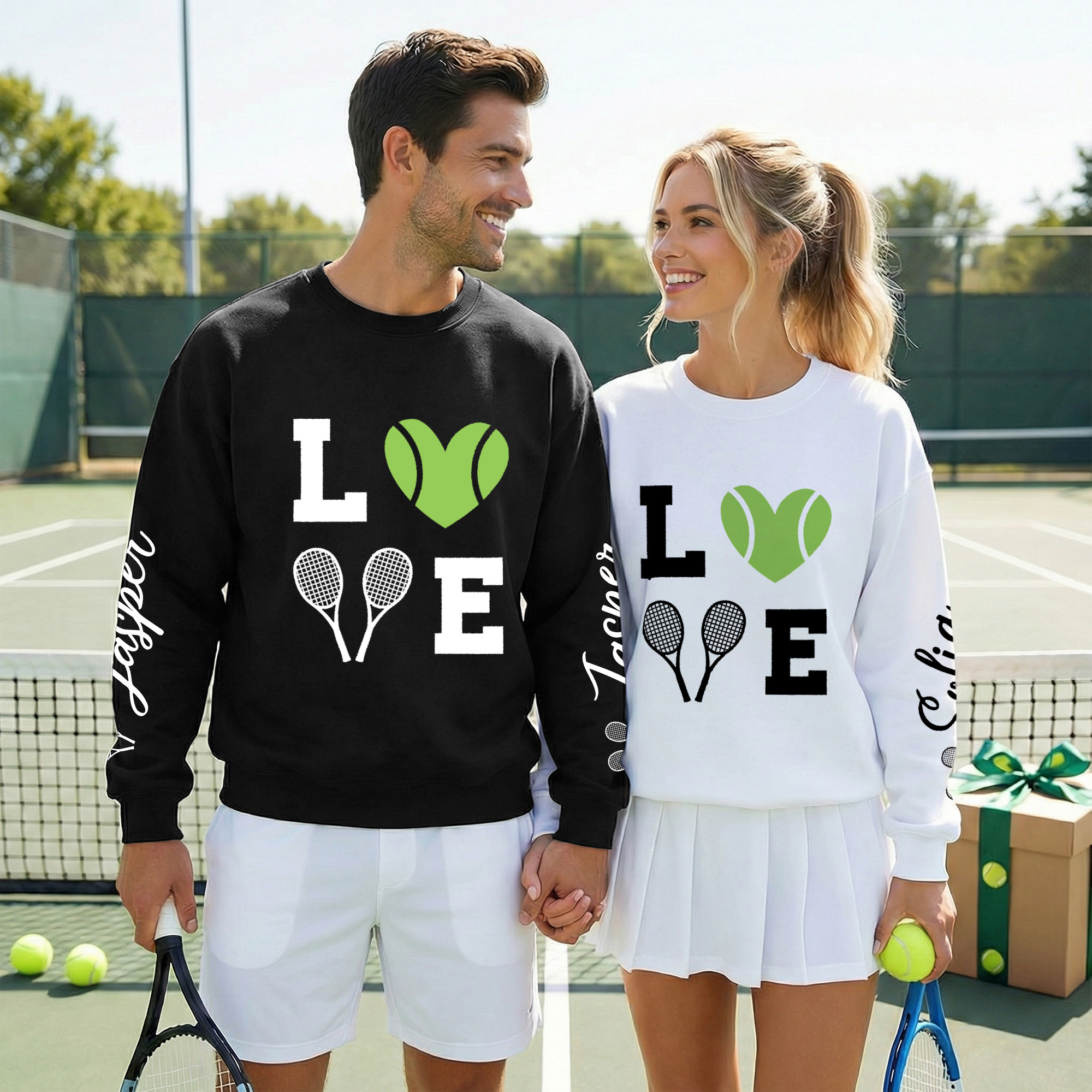 Personalized Name - Each sweatshirt or hoodie can be customized with a name on the sleeve, creating a meaningful tennis gift that feels personal and unique for players, coaches, teams, couples, or tennis lovers who want to show their passion in a special way.