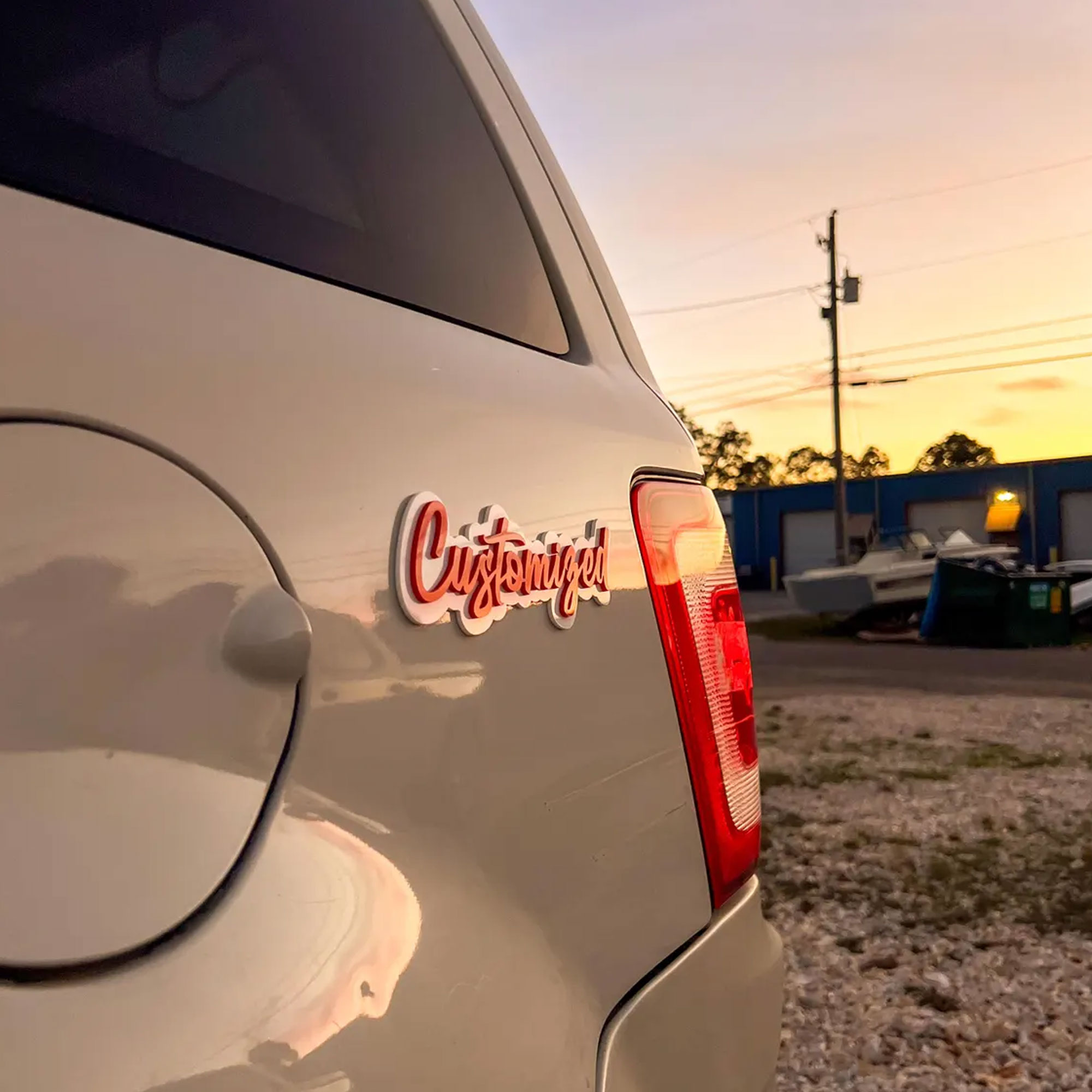 3D Lettering Emblem - This personalized car badge features vibrant lettering that stands out, adding a unique touch to your vehicle. The 3D design enhances visibility and style, making it a perfect accessory for your car, truck, or motorcycle.