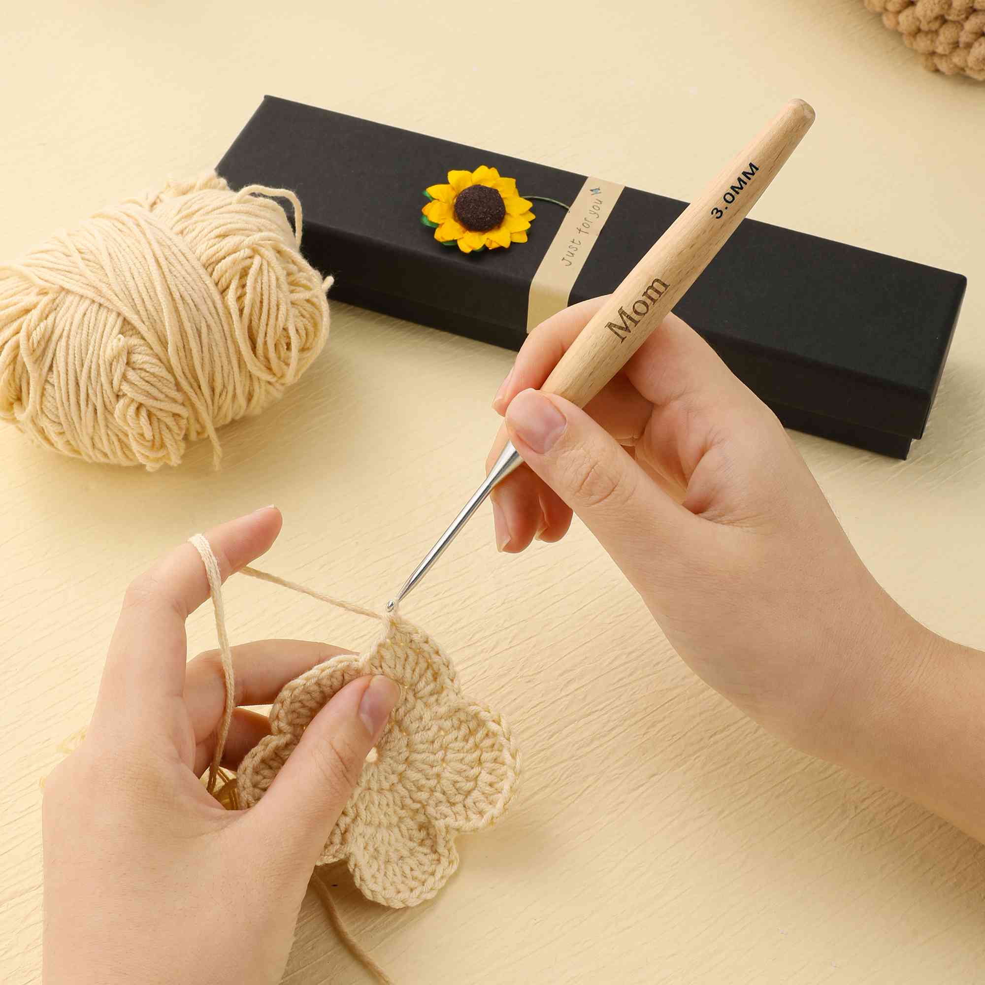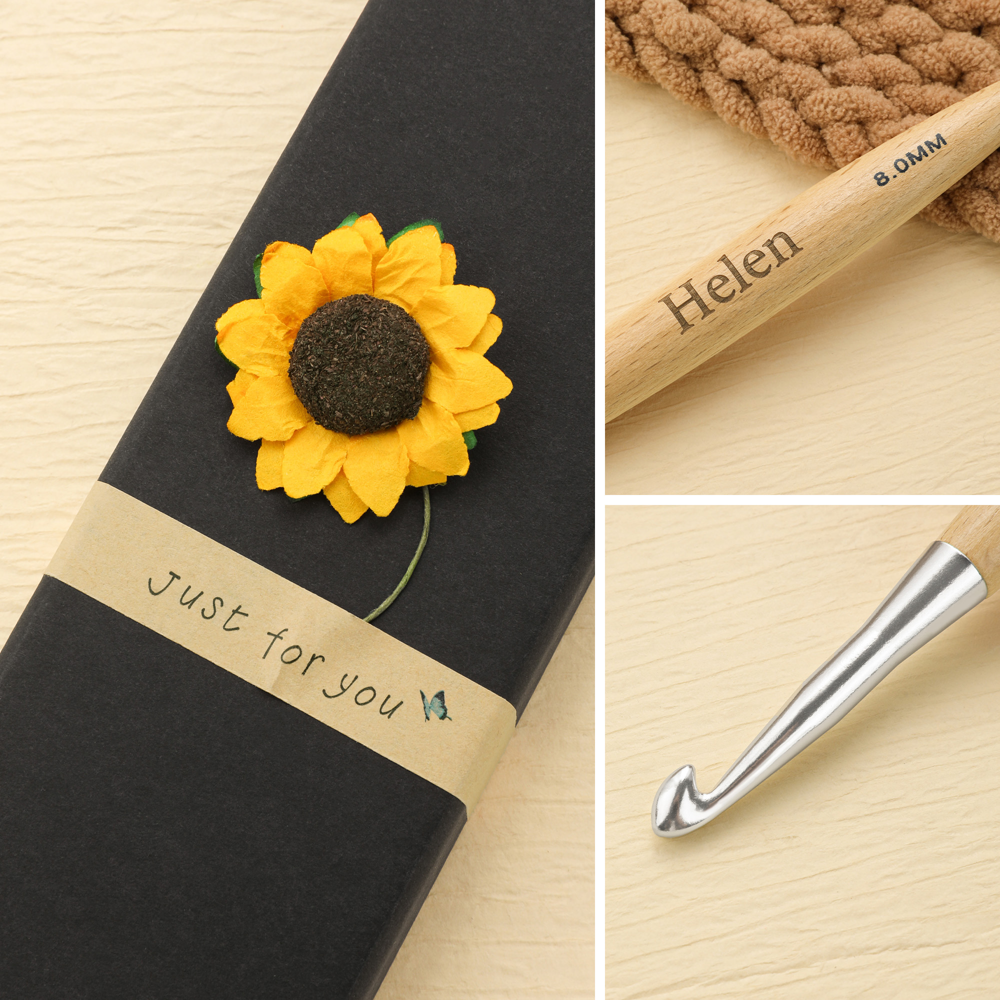Unique Design - This custom crochet set comes in a charming box decorated with bright sunflower artwork, adding a sense of joy and warmth. It includes two crochet hooks in different sizes, and you can personalize each hook with a name, date, or meaningful words to create a truly special keepsake.